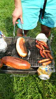 今日は、多摩川河川敷にてバーベキュー♪BBQだなんて、何年ぶりでしょ~。大人になってからは初めてかしら?アウトドアおたく夫婦の主催により、知らない人や知ってる人が招集され、「大人のBBQ」は開催されました。もう、この夫婦に任せればアウトドアは恐いものなし。何せグッズが完璧にそろっているから、参加者は身一つで行けばよいだけ。二人ともがアウトドア好きっていうのが、素敵なところ。奥様も大好きで、二人で力を合わせて、楽しむことに全力投球。アウトドア嫌いな女性も多いだろうから、こういう趣味が同じ二人は、それだけで幸せですね。はい。11時スタートといわれつつも、ちょっと遅れて多摩川到着。既に、タープや椅子の設営は完了していて、炭に火を入れ始めたところ。調理は今からスタートというところだったので、しっかり働きました。みんなで協力して参加するからこそ、美味しくて楽しいBBQ。まず手始めに、ホットドックで腹ごなし。 ご夫婦お勧めの美味しいパンが香ばしくふわふわ。それに、ソーセージときゅうりを挟んで、ケチャップとマヨネーズで味付けしただけの、簡単ホットドック。最高に美味しかった~。 そして、ダッチオーブンで作ったチキンと野菜の蒸し焼きこれが、信じられないくらい美味でした!!塩コショウと、シーズニングを絡めただけなのに~。下から弱火、上には炭を乗せ、しばらく放っておいただけ~。野菜の水分が出て、旨味も凝縮され、にんじんもジャガイモも甘~い。チキンなんて、ほろほろに軟らかい。みんな「うまーーーーいっ!」と大絶賛でかぶりつきました。写真に撮り忘れたけれど、この次に豚汁も完成してました。よそうのに必死だった(苦笑)で、少し残った豚汁に、残った食材をあれこれいれて、また別の汁物が完成。野菜たっぷり、お出汁たっぷり具沢山♪美味しくない訳がない~。カラになったダッチオーブンは、また再稼動させ、残った野菜を蒸し焼きに。これまた簡単だけど、ホクホクで美味しくなりました。ダッチオーブン万歳!これだけでも「どんだけ食べてるんだ?」って感じですが、間に、常に網で野菜やお肉や、穴子や厚揚げまで(!)を絶えることなく焼き続け、食べ続けてました~。そしてもちろん、飲み続け(笑)さすがの私も、休みの日であっても昼間から飲むことはないので、炎天下の中の飲酒にはドキドキで、少しセーブしていたけれど、「お前が飲まないでどうする~」「何を遠慮してるの~」とご夫妻に突っ込まれ、最終的には何時も通りにワイン飲んでました・・・。でもやっぱり、ここから電車で帰ると思うと、気持ち悪くなる自信があったのであれでも、あれでも一応セーブしたんだけどな・・・。後からチラホラ人も増え、最終的には10人くらいの会になってました。新しい出会いもあり、ちょっと緊張したりして。でもでも、せっかくの出会いでも、こういう時に、全然働かない人(座ったままでタダ飲み食いする人)を見ると、親しくなろうという気にもならず、会話することも無駄に思えちゃって。相手が医者だろうが、東大卒だろうが、私には全然魅力的じゃない。これは男とか女とか関係なし!女性でも、そんな態度の人がいて、不快だった。でも主催者夫妻が人好きだし、コミュニケーション能力が高いお二人なので、特に気に止めることもなく、楽しそうだからよしとするか。私は私のペースで、その図々しい人たちの会話には入らず、タダひたすら焼いたりよそったりして過ごした。幸い、同じ感覚の大人がいたから(知ってる人で良かった~)、その人と、仲良く「焼き物担当」に徹して、楽しくお酒を酌み交わし続けてた。(こういう状況になると、急激に親しくなってしまうから不思議)12時頃から飲み始め食べ始めたBBQも、18時ごろから撤収作業開始。急に暗くなり始める中、みんなで手分けして急いでかたづけた。(こんな時でも、ただ飲み食いしていた人たちは、本当に何もしないから信じられない!!)久しぶりに晴れた週末、念願のBBQが出来、ご夫妻もご満悦でなにより。「また招集するからね~!」と奥様のシメのお言葉により解散。大人のBBQ、最高に楽しくて大満喫。また絶対に参加しまーす!!
