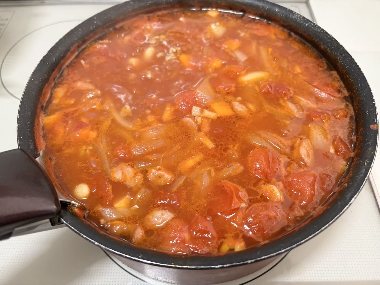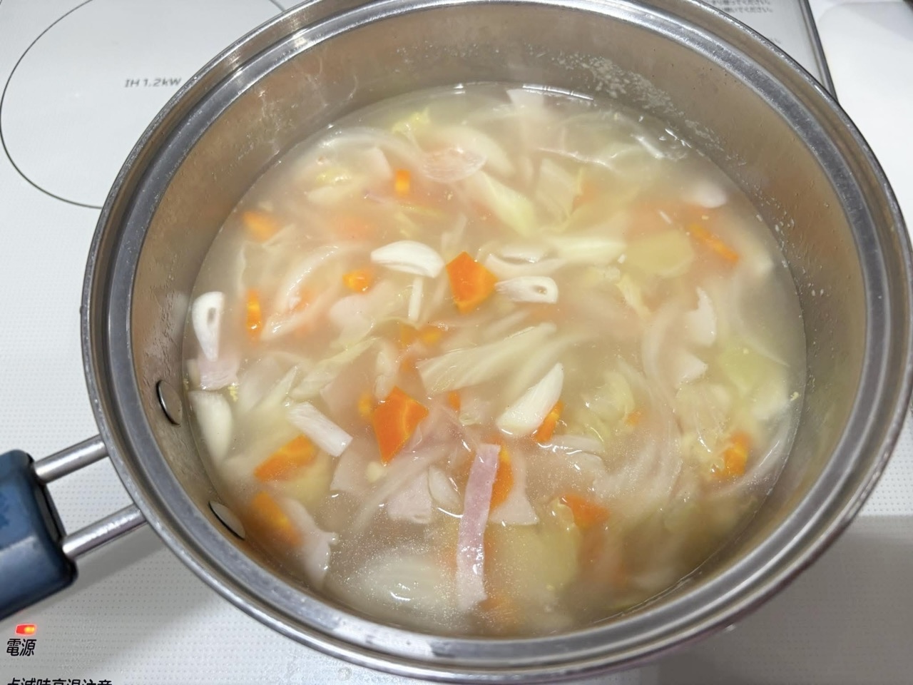 野菜スープは私が作りました。サンドウィッチは女性陣が作りました。