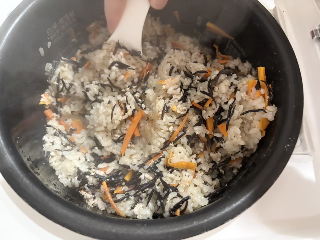 今日は料理当番。炊飯器で炊き込みご飯を作りました。