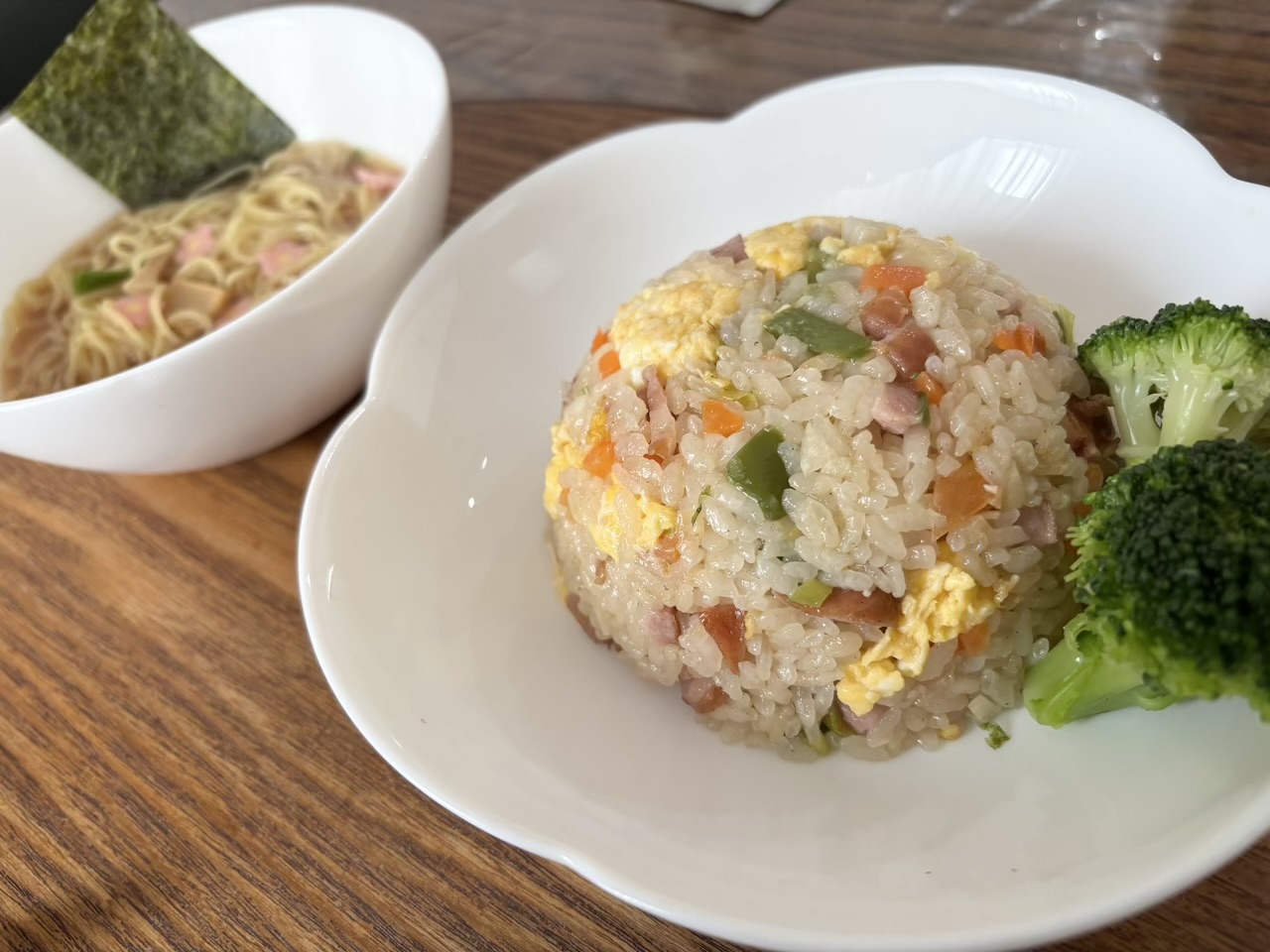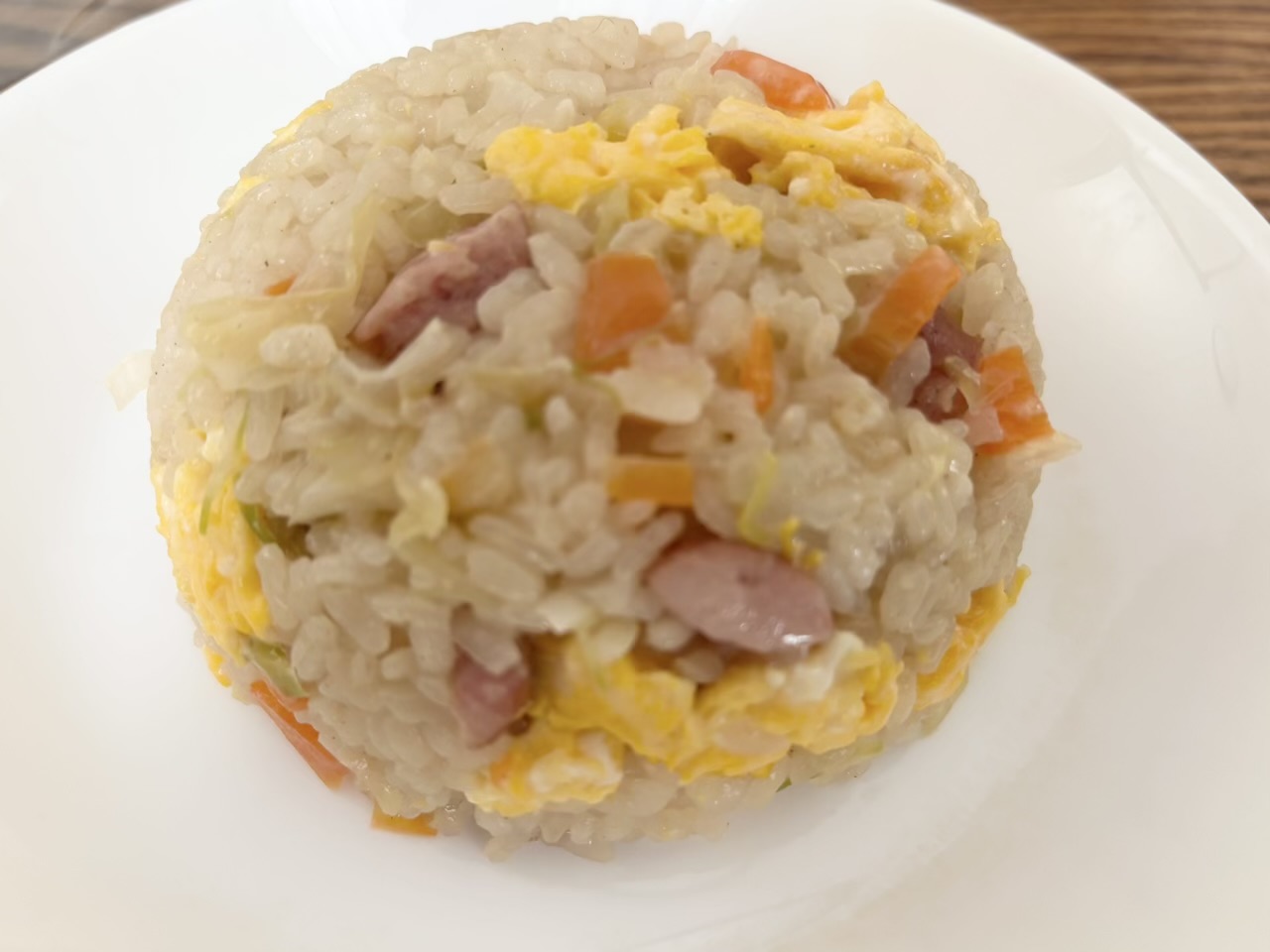 にんにく🧄たっぷりチャーハン。アラジントースターで作りました。具材は冷蔵庫の残り物。