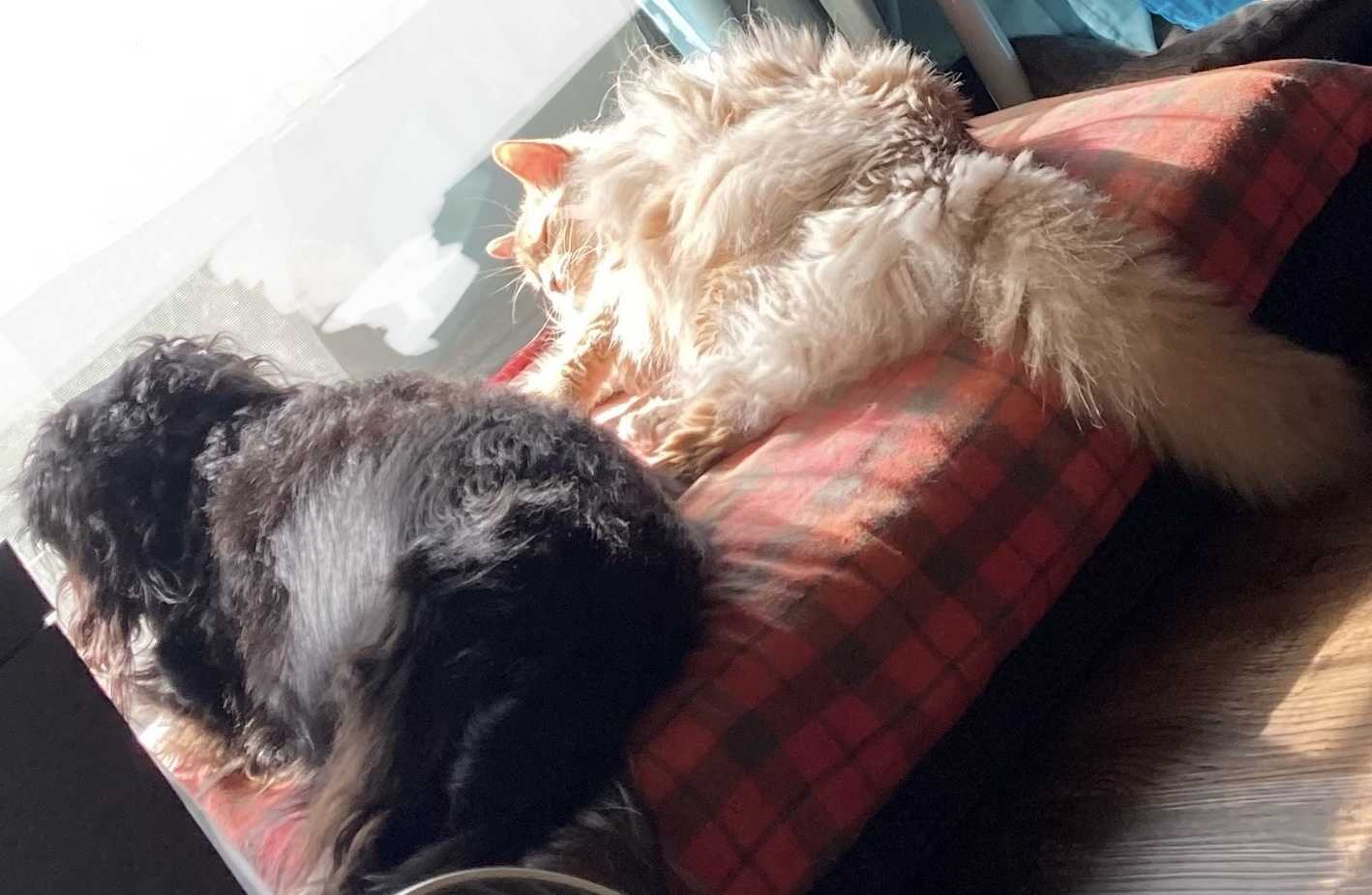 モナカが亡くなって1ヵ月私の誕生日が8月29日なんだけど次の日に亡くなったのみんな、この日は避けて頑張ったんだねって。本当にそう思った。30日は病院の日で帰って夜ご飯の時にねモナカがヨタヨタ歩きながらカリカリご飯食べ始めたのチュールも食べてカツオのお刺身も食べてお代わりもしたの全然食べてくれてなかったのにご飯終わってしばらくはヨタヨタ歩きながらお気に入りの場所に自分でいって寛いでた時に急に呼吸がおかしくなって…モナカの様子をずっと見てたのよねヨタヨタしてるから呼吸がいきなり激しくなって直ぐに顎呼吸になったと思ったら…あっという間だった…5分もしない内に…いっぱいいっぱいギリギリまでみんなと一緒にいれたし生きたと思ったこの日sもお休みの日でみんな居る時間でこの日までギリギリ頑張って生きたんだと思う。本当に頑張ったと思う。みんなが明日があるって思ってただけに一瞬でいなくなったのが信じられなくって…御葬式終えて病院の先生にお世話になったお礼に行ったら先生もモナカの死が急で驚いてたお家に帰ってノンにモナカ居なくなっちゃった…って話したら「わんっ!わんっ!」って2度あたしの顔見て吠えたの絶対何かあたしに言ってる気がした何を言ってるのかは分からないけど亡くなったのを理解して悲しんでるのか…それともモナカ亡くなって連れて行ったのが自分達だから、どこに連れて行ったの!って思ったのか…何で居ないの!って訴えてるのか…分からないけどモナカの事で何かを察して鳴いたんだと思うだってずーっと一緒に戯れあったり大好きな日向ぼっこも2匹一緒に横に並んでしてたりノンとモナカずっと一緒だったもんねモナカが動けずベッドで寝てる側にそっと横に来て寝たり…モナカが居なくなってからはノンも寂しそう相棒が居なくなって気にする相手が居なくなってずっと寝てる…自分達も喪失感がすごかったけどノンもそうなんだと思ったモナカ…体楽になってるかな…もうしんどくないかな…ご飯沢山食べてるかな…