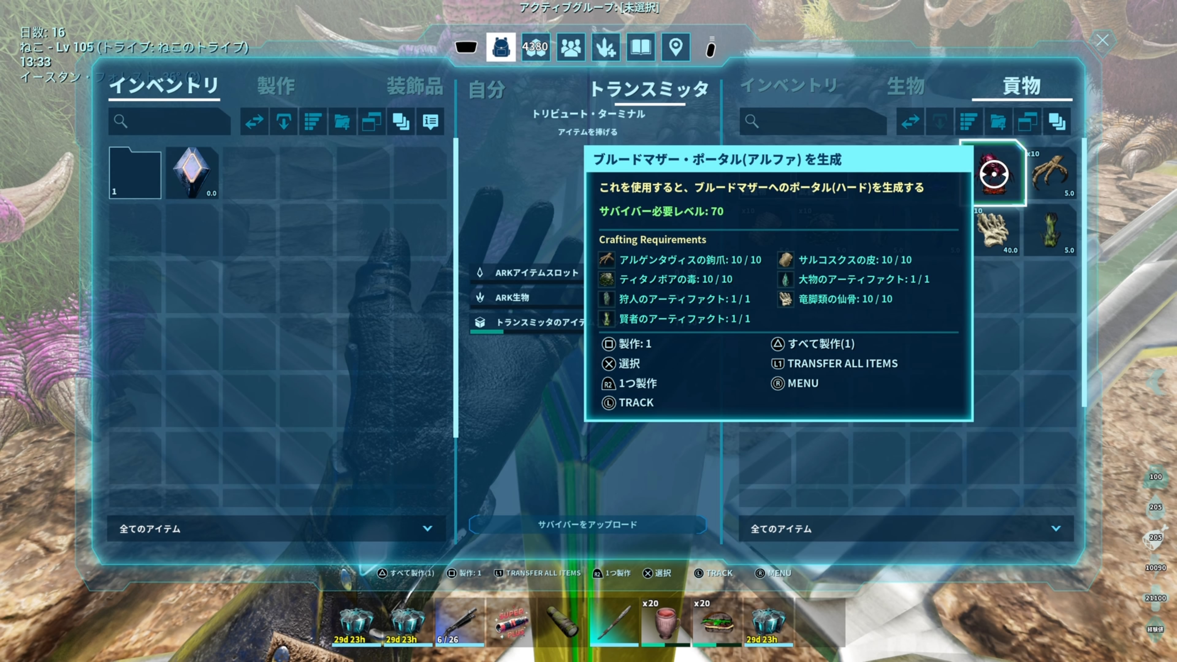 どもASAローカルのブルードマザーαBOSS行って参りました!が⁉︎なんという事でしょう…やらかしたのです…いざα出陣!と…何とかボス討伐出来たものの…自分のミスで1匹殉職しちゃいましたレベルあげて体力回復させて無いまま連れて来ちゃったんすよね後ね…討伐終わったらエレメントがαだと148枚貰えるんだけれどもね私…思いっきり勘違いしててASEだと討伐後にアタッカー達の誰かのインベントリの中に勝手に入ってるのよてっきりインベントリ中に入ってると思ってて無事に?ボス戦から帰還したのよでみんなのインベントリ見回っても誰もエレメント持って無い⁉︎後で郵送してくれるんだろう…ってな訳あるかーい!インベントリに勝手に入るのは昔のASEであって今のASAは、報酬クレート出るから自分で取らないといけなかったんだー‼︎すっかり勘違いしてましたわー(T⌓T) そーだよクレートだったわって気づいても既に遅し…メガテリの大量3万でギリ?何とか行けたんだけど1匹体力回復忘れて死なせちゃうしエレメントは取り損ねるしTEKエングラム何個か解除出来たのにエレメント0なもので何1つも作れぬぞ悲しい…TEKエングラム解除やエレメント欲しさでBOSS行くのに…エレメント0って…α用のアーティーファクトや貢ぎ物集めたのにさ何やってんだか…🤦♀️無いものは無いんだし、しょうがないと思ってね気持ち入れ替えて本サーバー戻ったのよ本サーバーって本拠地ね笑で気を取り直してそこでエングラム確認したら。。。。。。。。え⁇うわぁーそうだったわ(◞‸◟ㆀ)ショボンマップごとにキャラ作ってるから今回アイランドのBOSS討伐したのはアイランドにいるキャラなので本拠地にいる(センター)のキャラはBOSS討伐になってないからTEKエングラムすら何一つ解除されてないという事実…やらかした…何もかもやらかしてる…そーだったわキャラごとだったわ…何やってんだ自分…言い訳してみると…ソロでのBOSS討伐って事でテンパっててさ恐竜のボスへの支持やら色々テンパっててさ…何もかも真っ白になってて頭ん中がぶっ飛んでたって事よねwwメインはセンターキャラなのでセンターでBOSS討伐行くしかないのだよいや〜思ったより更に時間掛かる予想ww1からセンターでアーティファクトを洞窟に取りに行かないとだしやだなぁ海の中にもあるんだよな…難題はイカの触手よそんなに居ないってのもあるしだって怖いじゃん😱しかもセンターのBOSSって蜘蛛とゴリラ同時に討伐だから難易度上がるよね(T⌓T) アイランドだと蜘蛛だけゴリラだけなんだけどね同時か…行けるかな?多分もっとステイイ恐竜厳選から見直してテイムしないとだねユウティラのステは良しとしてメガテリも良しとしてダエオドンの食料値が今回全く足りて無かったんでダエオドンの食料値個体を見つけないとねRexは…どーだろうステはイイと思ってたけどまだRexでBOSS行った事ないからどんなもんかが分からん…ダエオドン探しつつRexのステ良いに越した事はないんで居たらテイムかな早くトランスミッターとテレポートとTEKスーツ解除したいんだけども…あれ⁇今書いてて気づきだけども…他マップのエクスでTEKスーツでエレメント生活しようと思ってたけども…本サーバーでTEKスーツ解除して作ってエクスに転送してエクスのキャラで使おうと思ってたのに…マップごとのキャラがBOSS討伐しないとエングラム解除しないから使う事すら出来ないじゃないかうわわわわどないしよエレメント生活…一旦保留やんけ…え?結局…どうするのがええねんTEKスーツ使うんならエクスでBOSS討伐行くしか?今更だけどキャラって転送出来るのかな⁇その変のローカル事情が全く分からん公式ならキャラ転送しつつ転々とできるのだがローカル分からん取り敢えず…んーーーーどうすりゃえーーーーねん༼;´༎ຶ ༎ຶ༽でわ