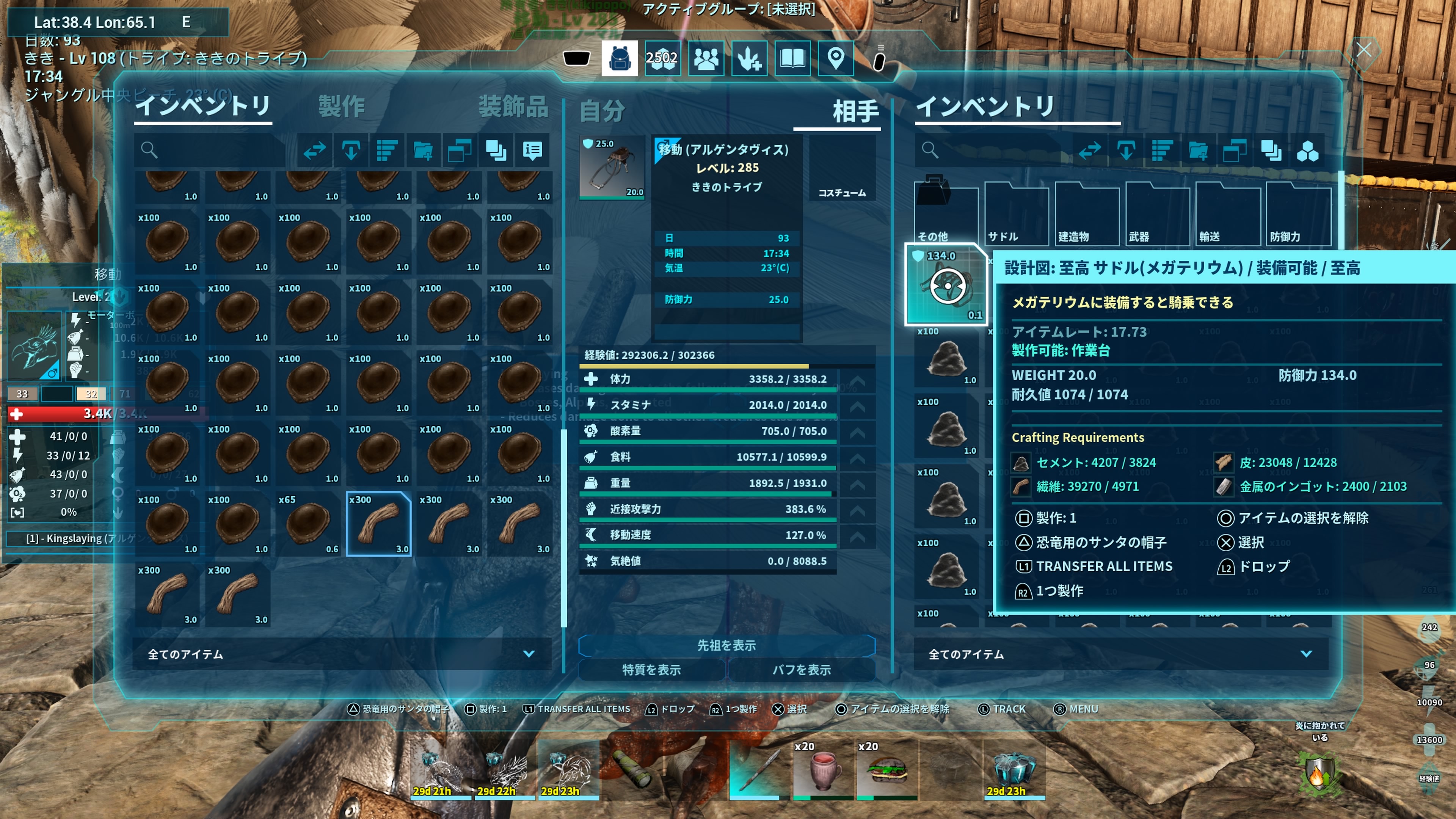 ども凄く凄くモヤついてますASAのローカルでちまちまやってるんですけどね他鯖(アイランド)でサドルやら武器装備系やら設計図やらを取ってきたのでメイン鯖へ転送しようかとオベリスクのポータルのイベントリに全部入れたのねそん時にエラー落ちしたのさ…直ぐ起動してINしてメイン鯖(センター)でポータルのイベントリから転送してある物を出そうとしたら…案の定、全〜部消えてたのさワイバーンまで😩しばらく『無』になってましたwショックだけど、どーしようもないんで忘れる事にして…今度はメイン鯖から(スコチ)へ行ったのねスコチは何度も行ってるしなんならワイバーンの卵取りにも何度も来てて度々来るだろうしって事で拠点もまずまず大きくしたのよここからもうちょい大きくなって行くのかな…って矢先…あwその前にねエクスにも拠点小さめあるんだけどエクスで洞窟周回してみようかと思って後はOSDやらノードもやりたいしノードやるにはカマキリテイムだな〜とでwスコチでカマキリテイムしに行こうかと思ってメイン鯖からスコチへ移動した訳よで…新規キャラ画面に…え…もう一度起動し直して…新規キャラ画面…うそやろ…え⁇マジか…あの拠点無くなったん…カルカロ7匹置いてたんだが…ワイバーンも…ドエディ…アルゲン…マジで?信じられん!拠点も何もかも無くなるのってこれで2度目ぞっっっ‼︎そんな事ある⁈ASAのローカルってこんな感じなん⁇公式より酷いじゃないかwwうわぁぁぁカマキリテイムしに行こうとワクワクしてたのにさww今までが今までだけに警戒してるから一応常にブリーディングはしてるからさ恐竜はなんとかなってるけどさ流石にカルカロ7匹は痛いけど笑サドルだったりアイテム系が消えるのは頻繁にありそうで常に覚悟してるけどさw拠点もキャラも全部無くなるのだけは全くよろしくないぞマジで他鯖で拠点作るの怖いって😨大事な物おいとけないしさいや〜まいった🤦♀️でも、計画してる事をめっちゃ楽しみでやりたいからさ笑笑新規スタートで再びスコチで建て直すけどねむしろwまた同じ場所で建て直すか他の場所で建て直すか考えてるわww同じ場所だとワイバーンの巣と砂漠に近いから都合いいんだけどなどうしよっかな🤔先ずは、拠点作るのにその場所まで行かないとでスコチってかなり過酷でスタートした瞬間から地獄よwまずはオベリスクまで猛ダッシュしつつ獰猛な動物だらけで結構オベリスク着くのに時間掛かるのよね何度も死にながになるだろうしカマキリテイムしたいだけだったのになーwまた1からだもんなまたカルカロ、ワイバーン、ドエディやら数匹を転送もせないかんし(転送でアイテム消える)転送のリスクもある中でwカマキリテイムまでが時間掛かる事になるな…基本余り大きく拠点は建てずにだねwまた全ロスするかもだしw死にながらもやっとの思いで走ってオベまで行って順調に拠点も建てたのにな〜また死にながら走るかwwwでわw