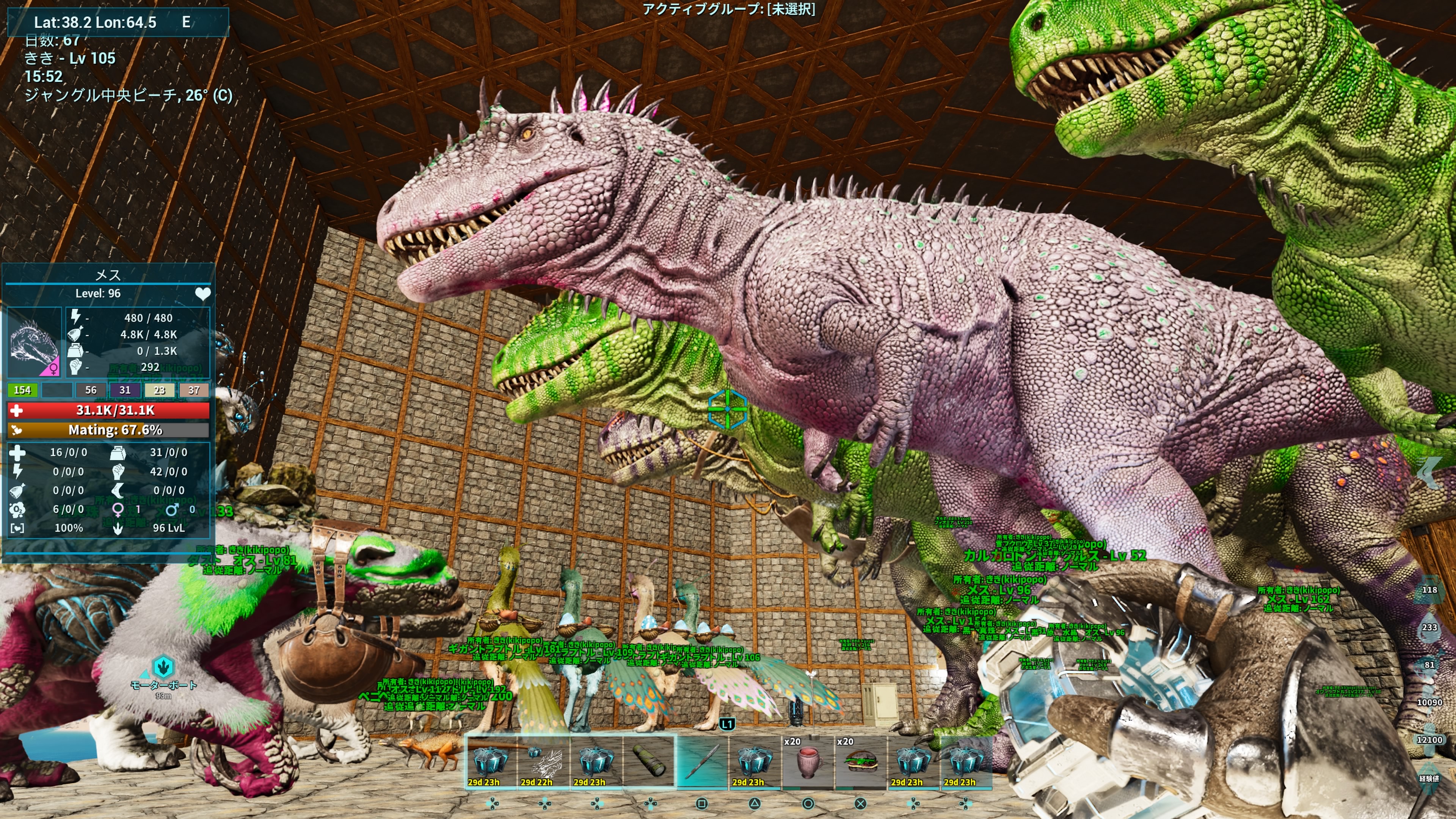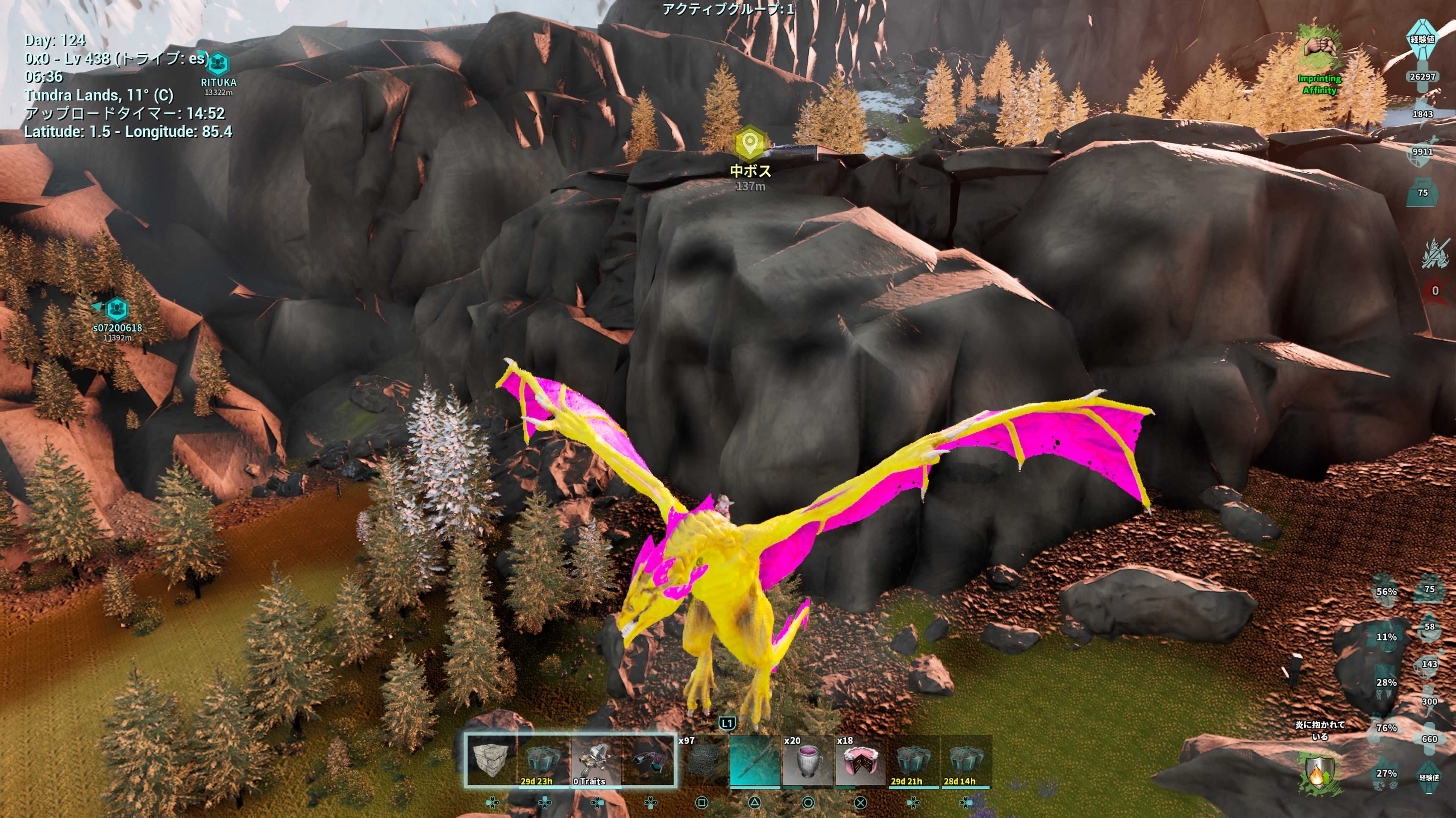 どもさささささむい一昨日は暖かくて心地良かったのに寒すぎんぞ公式のASAやりつつもって言ってもね週末イベントやらで倍率来ないと大してやる事もないのよねw等倍じゃやる気が出ないっすでローカルでちょくちょくやってますローカルはラグくないw公式じゃエラー落ち多発だからwwけど…バグ散らかしてるかもーーー公式じゃありえない様なバグがねww最初一生懸命建てた建物の真横にいきなりクレートが湧く様になって…クレート湧く場所周辺って建築不可なのねでも湧く判定すらないから建築出来てた訳よでもクレートが強引に湧く様になっちゃったんで建築不可に強制的になって何も置けなくなってしまって室内でタンス置こうとも置けんしさやむえず引越したさ初っ端から良くないバグだーそんで新たに拠点を建ててもうここで腰をおろす覚悟でちゃんと建てたのねそんで他の鯖も行きたいしでも良く分からないしって思いながらもやって見た訳よwそしたら…間違えてキャラ上書きしちゃって泣今までのキャラ上書きで消えて新たなキャラで新規スタートになってしまって…建てた建物にすら入れないし恐竜にすら乗れない状態やらかした〜泣って思ってたら、コマンドで強制的に今までの建物を取得出来るとかでなーんとか無事取得出来て安堵wキャラは、またレベル上げないかんけどwwで他の鯖にもアイテムやら恐竜持ち込んでようやく行けて小さな拠点を建てて一旦落ちて再び来ようかと…再び来たら…全部消えてたwww何もかもよww装備やら恐竜やらカルカロ消えた…キャラすらいねぇーまじかよ…でも諦める訳にもいかずなんせガチャとマナガルムと雪フクロウをテイムしたかったんでwなーんとか再建できたwカルカロ消えたけどブリしてから移動して良かったって思ったwこの後もポットからREX出したら目の前で消えたりポットから出すとエラー落ち少々あったりポットに閉まったワイバーンも消えたりINしたらボートの建築部分やカート菜園が消えてたりインし直したら直ったり結構公式では体験出来ないよろしくないバグが多々あったりでwでも可愛いカラーのカルカロ捕まえたからバグあった事も忘れるさwwいつかこの子も消えるかも分からんけどねww一応ねドラゴンBOSSを目指してはいるのねwのんびりやってるけどwwREXのステはいい感じかな?分からんけど笑メガテリは大丈夫な気がするあとはユウティラ、ダエオドン、テリジノの高レベル150いたらいいけど取り敢えず150中々出会えんし高レベ145辺りを探してはいるその他にBOSS行くのに貢ぎ物取りに行かないとだしイカ触手がね怖いよねって、まだ海洋生物すらおらんけどねw海の生物かーーー大変よねーーーバシロとモサは必要よねーーー公式でも海怖くって基本余り行かない人なのよね笑笑あw洞窟もやばいよねアスレチックみたいにジャンプして〜みたいの多々あるからやだわー取り敢えず本拠点はセンターに住んでるんだけどセンターのビーコン余り良くなく感じてしかも海の中とに落ちるしアイランドでビーコン周りしながらのサドル集めて洞窟も行こうかとって、免疫行ってみたのね洞窟っていってもいつもSいたし1人で行った事すらないんだけどwガスマスク必須で2個持ってメガテリも持って少し入った訳よメガテリは文句なしいい感じで安心やったんだけどガスマスクの消費の激しさにビビってしまって直ぐに出て来ちゃったwwwガスマスク2個じゃ足らんってwwもっと作って持ち込まないと…しかも狭っっっい!視界ほぼ岩壁しか見えんぐらい狭過ぎて見えん閉所恐怖症でもないんだけど不安過ぎるんだがwしかも方向音痴だからガスマスク2個じゃ足らんなので一旦作戦会議wドラゴンBOSS倒してテレポータやミッター使いたいんよねでもこの調子だと自分で思うけど、いつになるのやらwwwってな感じ笑ASAのソロってマジで大変ね笑笑そんな感じでのんびりやっておりますwwだけど…モンハン買っちゃったって言うw今、ASA公式がDDOS攻撃で中々出来ない状態が続いてたもんでw太刀気持ちぃぃ一緒に遊ぶ相手いないからwSをな〜んとか説得して笑笑そしたら、sめっちゃハマって遊んでる最初は絶対やらん!言うてたけど毎日夜中3時ぐらいまでやってるもんwwふっふっふっ楽しそうにしてるやないかいww良き良きでわw