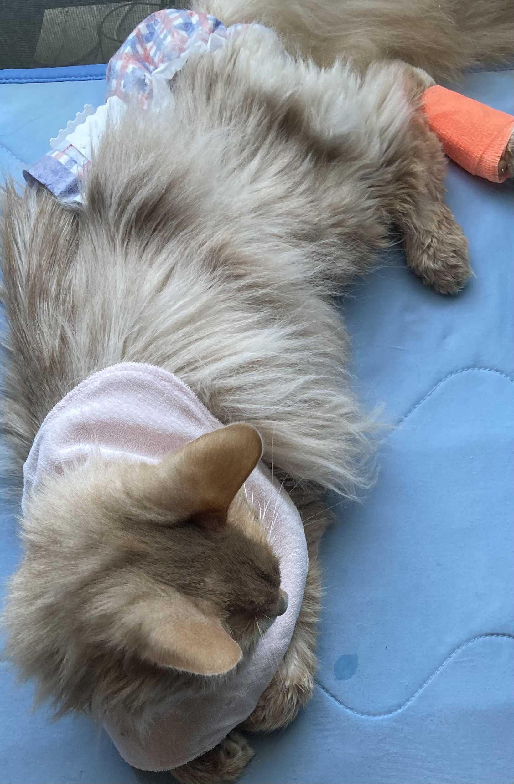どもモナカの最初に打った点滴の傷口から化膿しちゃって病院へ行って治療してもらい…今の状態だと抗がん剤も再スタート出来ない状態だから色々話しした結果…一時しのぎって言われていた輸血をしてみる事に。副作用とかの不安もあるけど、今のモナカには血が必要だしやるしか選択肢が無い様に思えたんでそのまま夕方までお預けでしたこの時点で、誰もがモナカの状態みてそろそろなのかな…って思ってたと思うんよね自分達も今まで見てきて日に日に体調の変化が悪くなってきてるのも分かってたし2〜3日なのかも…長くても1週間なのかも…って思ったりしてて…体重も2kしかなくガリガリで腸も機能してなくって動けなくもなってて虚ろ虚ろで視線も一点しか見ずに瞼も開いてる時間が多くなっててこんな状態でモナカは本当に頑張って生きようとしてるモナカも皆んなと少しでも一緒にいたいから頑張ってるんだと凄く思う。病院で預けてる間に何かあったら電話しますね。って言われるやんこの間って不安よね電話が怖いよねで迎えの時間になって、何事もなく時間が来た事に安心して迎えに行ったの…モナカが上半身起こせてるの!寝たきりで顔を少したまに起こそうとしてたのが限界だったのに上半身起こしてキョロキョロしてんの!しかも!足触るとキックして思わず「キックした!」って喜んじゃったよw足も動かせなかったもんしかも!肉球と耳が今まで青白かったんですよねこんなに青白くもなるんもんなんだって…それがピンク色に戻った!血管も見えてる!輸血でこんなに変わるんだねドナー猫ちゃんに感謝です🥲モナカの血液型はA型でしたwそれから家帰ってもね体動かそうとしたりトイレ行こうとしたりするんだけどまだヨタヨタで1人で目的場所まで行けるかってなると行けない動ける様になっあけども歩くまでは出来ず寝返り出来るからどうか…な感じかなそれでも嬉しいよねカリカリも1粒自分で食べてたw先生に食べ物に関して聞いても腸が動いてないので…自分で食べるなら…な感じだからレントゲンも撮ったら胃にガスが溜まっててガスも抜いてもらったのねそう言うのもあって少しは体が楽になったのもあるかも便はタール便出てるからまだ出血はしてるのかも輸血したけど自分で食べれないから徐々に血は無くなるしまだ出血してるとなると…って考えるとまた輸血しないとってなるんだろうな…この時に病院行ってねもう治療する事がないですね…って言われるのが怖かったよねこの時グッタリしてたし…看護師さんも朝来た時よりも元気になりましたよねって言ってくれてw自力で頭起こすと、なぜかボブルヘッドみたいに頭がグラングラン左右に動くのねw看護師さん達も可愛い過ぎて笑ってたwグッタリしてるのは載せたくないけど…大好きな日向ぼっこして良い顔してるwヨダレが凄く出てるんでモナカの首元がヨダレまみれになっちゃうんで赤ちゃん用のヨダレ掛け買ってみたwボタン式とマジックテープ式があってどっちが良いか分からんかったから両方買ってみたらマジックテープ式が良い感じ!ニャンコがライオンのヨダレ掛けしてる笑このまま体調が持続してて欲しいな…このまま治るんじゃ?って思いたくなるよね一時的だろうし徐々にまた体調悪くなるんだろうな…血も自力で作られないだろうし出血もまだあるんだろうしその時にまた輸血出来ればいいのか…数こなすと副作用の確率も増えそうで不安でも、他に選択肢なさそうなら輸血するだろうな…でわ