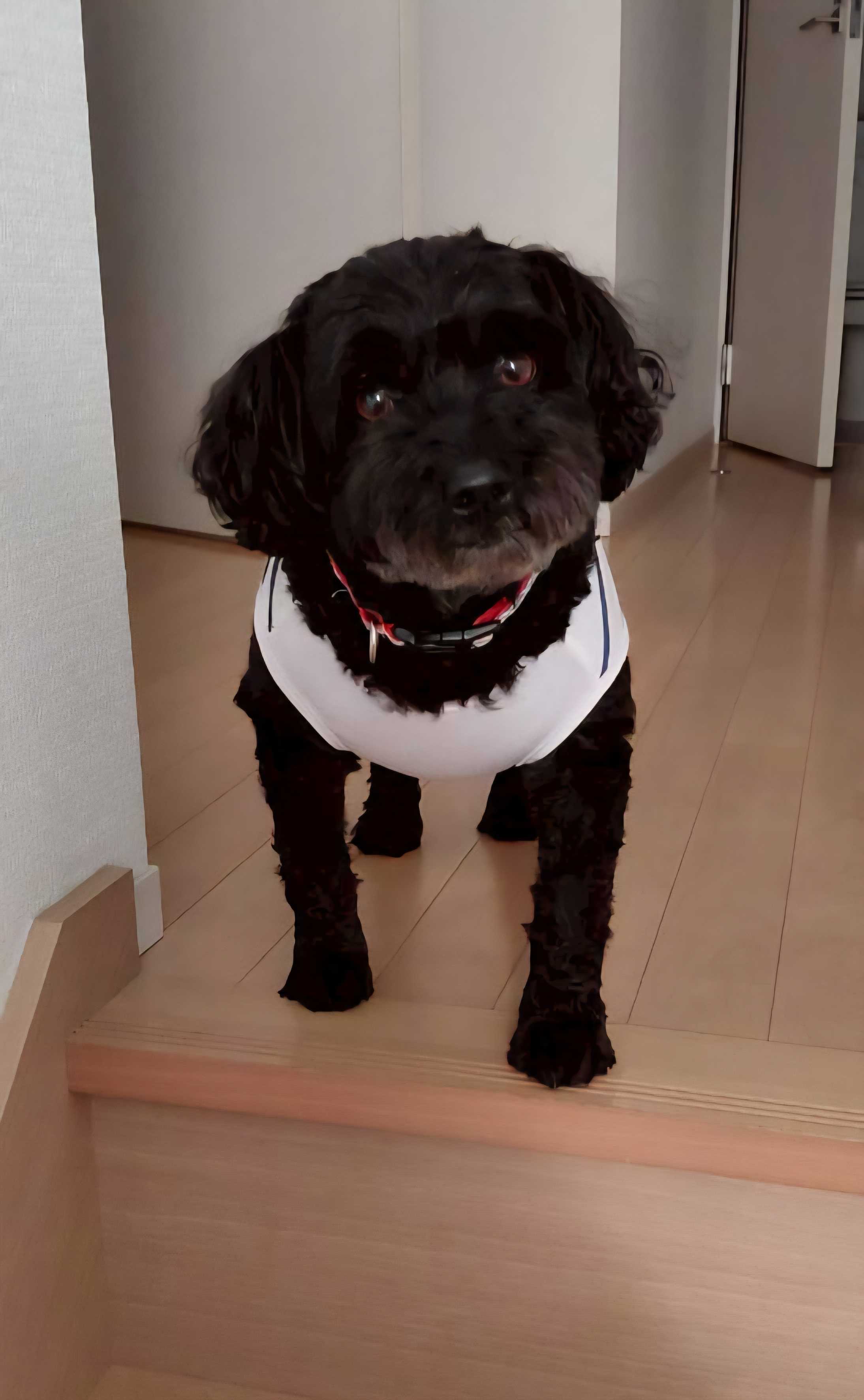 2階に上がって降りられなくなって情けない顔してました(笑)