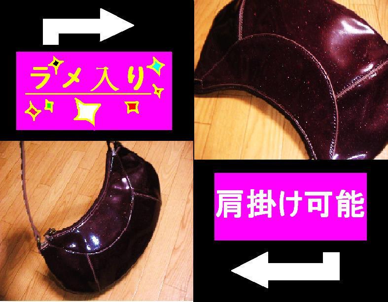 SACのバッグ、バイオレットエナメルのラメ入り。