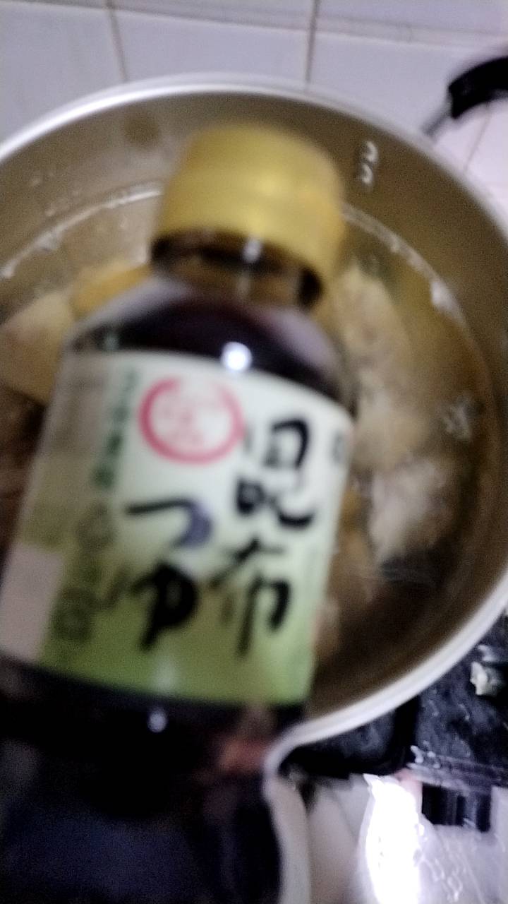 ブリならではの油やブリだしになりますから、基本の味付けは100円ローソンの昆布つゆを、ご家庭のお好み味付けで。