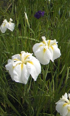 いずれか あやめ 花菖蒲ひょっとしたら カキツバタ正直言って、どれがどれやら区別がつきません「葉の幅で区別する」という話を聞いたことも有りますがやはり、ダメッ!昼過ぎごろになって、雨も上がりましたが薄日の差す中で 今度は 「えらい 湿度!」風もないので、ムンムンですそんな気候を喜ぶように近くの河川公園は “〇〇〇”の花盛りでしたさーて、この“〇〇〇”に入る名前は、なんでしょう?