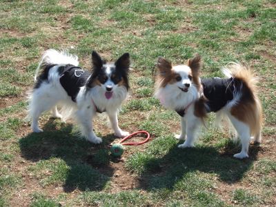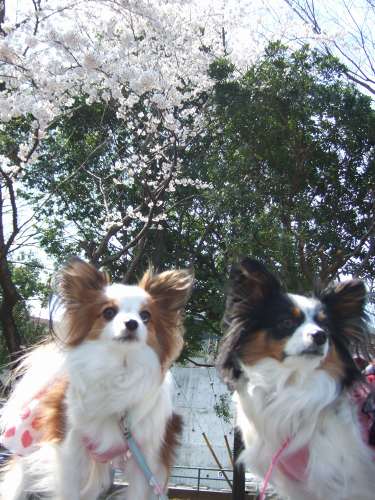 ♪♪春~が来たぁ~春~が来たぁ~どこにぃ来たぁ~♪♪なんて鼻歌が出そうなくらいポカポカの天気だった今日!!さ~ちゃんがお弁当を忘れて行っちゃったのでそれを届けるついでにちょっと足を伸ばして(職場から5分くらいだけど 笑)クレジュピのお気に入りの場所“青葉の森公園”に行って来たよお昼頃を狙って、お弁当とスタッフさんへの差し入れケーキを持ってさ~ちゃんのバイト先の病院へ・・・・今日は青葉に行くよって教えてあったからこんなとこで道草なんかしたくないよ~ってクレジュピったら『ヒンヒン』言ってるのジュピはどうかわからないけどクレアは完全に青葉の森やポートパークなんて楽しい場所の名前は把握してます(自慢~* ̄∇ ̄)しかも前の夜に『明日行くよ~♪』って教えると朝になってもしっかり覚えてます。あったまいいでしょ~(親バカです)自慢話になるとつい力が入っちゃうので先に進むけど『ここは青葉じゃないでちゅよ』ってヒンヒン言ってるふたりを又車に乗せて青葉の森公園に出動しました♪青葉の森は人でいっぱい~(σ.σ)こんな天気だからみんな外に出たくなっちゃうのね。んで、まず記念写真=3 リードを離してもどこにも行かない出来たおふたり( ̄m ̄〃)ぷぷそれから広い公園内をいっぱい歩いて投げして遊んだよクレジュピ楽しそうだったなぁ( ̄. ̄)о○°ぽわーんひとりでふたりを相手にしなきゃならなくて写真があんまり撮れなかったのが心残りっちゃー心残りでも写真には残せなくても嬉しそうなクレジュピの笑顔は心の中にしっかり焼き付けたからまぁいいかなぁ・・・なんて(〃∇〃)エヘへ又来よう~ねクレジュピ~ ↓クレジュピのお洋服upしました(σ.σ)見てね↓