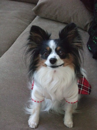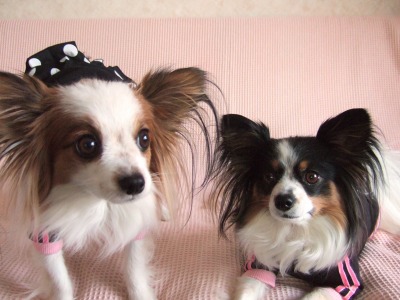 やって来ました3月28日(=・ェ・=)今日はクレージュの誕生日。お友達から“おめでとう”のメッセージやカードをたくさんいただきました。クレージュテレッ(〃∇〃)テレッ。娘達も『ママ~何が欲しい?』って言ってくれてなんとなく幸せ感を味わってます。でも私って欲がないってゆぅか、自分の物では欲しい物がまるでないの。その気持ちだけで充分嬉しかったりするしね了└|力"├_〆(・・ )♪ そんな幸せ感を味わってる午前ちぅ、『ピンポーン』って家のチャイムが鳴って郵便やさんが小さな包みを持って来てくれました。エッ?!なになに? Ψ( ̄∇ ̄)Ψ もしや・・・届けられたのは残念ながら(笑)クレジュピのお洋服 しかも頼んだのは自分だし!!(* ̄m ̄)ノ彡_☆ばんばんハイ!!おまたせしましたチラ見せ[壁]l_・チラッ クレージュの大好物の黒白ドットパーカーフード裏はゴージャスにレースだよ(=・ェ・=)そしてフードには [壁]l_・チラッ キラキラ&リボン&ハートのアップリケ彡☆背中にも~パピヨンのアップリケがめちゃめちゃ可愛い彡☆(ё。ё*)彡☆目の上にチョコンてついてる麻呂まゆわかる?これ、クレアですヽ(▽~*ヽ)(ノ*~▽)ノ今度はジュピプリケ登場彡☆可愛い~可愛い~かわぃぃー このアップリケ、既製ではちわわんとダックスとプードルしかなかったの。でもクレジュピ用にって、mob・girlのSAYAKAさんがパピヨンプリケを作ってくれたの早速試着=3 んぎゃー!!これは可愛い!!(* ̄m ̄)ノ彡_☆ばんばん生地も薄からず厚からず丁度イイ感じ~♪スカートを変えてっと♪ なかなかいいんじゃないのぉ~。パーカーがゆったりしてるから合わせるスカートはこっちの方が可愛いな。服の可愛さをモデルが引き出してないのが残念だなぁ。特に左の茶色い方、まったくやる気ナシだし*夜のまったり時間にみなさんのとこにお礼に伺いますね♪今日はホントにありがとう♪(*'-^)-☆パチン *クレージュが下手くそながら撮って来た写真やお友達が撮ってくれた写真をちょこっとまとめてみました。【TODAY総集編~2005まで】です。ぜひ見てくださいペコTODAY総集編~2005.12まで