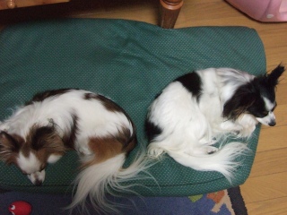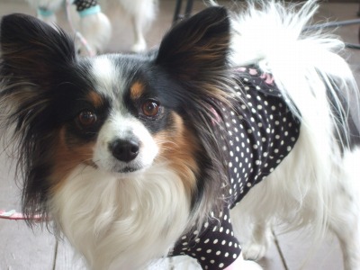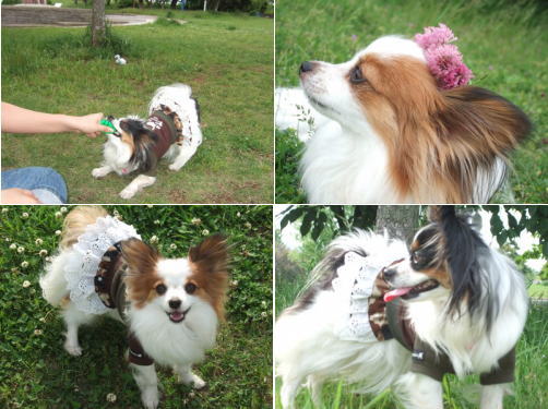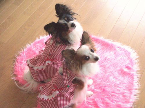 今朝のクレ&ジュピはグッタリです朝ご飯もまったく食べようとしません(>∇<;ジュピはともかく、クレアがご飯を食べないなんて&残すなんて1年に数回あるかないかの不思議現象昨日のオフ会疲れが残ってるのかはたまた具合が悪いのか・・・気になって検査薬(ジャーキーとも言う)で検査してみました。美味しそうに食べますぺろっと♪安心です!!(* ̄m ̄)ノ彡_☆ばんばん・・・この話は置いといて・・・昨日のつづき、行かせていただきますね。オソロのワンピでポーズを取ってくれてるのは・・・左から~クレア♪ジュピ♪ジュラちゃん♪レモンちゃん♪makipiさんちのお母様の手作りワンピでキメた様々な年齢層のパピヨンズです~でも美パピちゃんってとこが共通点(;¬_¬) じ~っ 全員おやつ目線ってとこもお揃いです( ̄m ̄〃)ぷっ いつもニコニコ、優しくって品行方正な男の子ハッピー君♪ 最近どうもキャラ変えを考えている模様のメルティちゃん♪ 昨日ご紹介した、こたろう君♪とクレの親戚さんショット[こ]おれら、親戚さんなんだって~+.(*'∇'*)゜+.[ク]エッそうだったの?アップで~♪って、こた君下向いちゃったお次はそっくりさんショット♪ こた君の妹分もなかちゃんとクレアもなかちゃんとクレアは血は繋がってないはずなんだけど色の感じやお顔の模様、おまけに背中の天使の羽までそっくりなの~でも悲しいかな、足の長さが全然違うクレ、短かっっ(‐_‐llアップで~こうやって見ると、年の差がくっきり(>∇<;もなかちゃんと比べるとクレアってば黒毛もちょっぴり色あせちゃってるし・・・まだ11ヶ月のピチピチギャルと4歳の子持ち女の違いってヤツでしょうか?運動量では若い子になんか負けてないんですけどねお肌が綺麗に見えるようにクレだけ[光]を多めに当てておけば良かったな自分を見ているようでほんのり悲しいです。