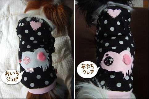 昨日の日記にupした日本一高くて 日本一美味しいと言われるチーズケーキの写真があまりにも きちゃなくて ホントに営業妨害だと思います~って仲良しの“M”さんから 駄目押しをされました(>▽<;美味しいケーキも 台無しにしてしまう才能のあるクレージュです こんばんは。食べ物を 美味しそうに撮るのって 難しいのねーと、反省しつつ今日も行きます クレジュピコレクション(* ̄(エ) ̄*)ポッ本日の クレジュピチョイスのお洋服はfuku fukuさん♪フルーツ模様が 超キュートなパーカーとデニムスカートですよここのショップさんのスカートは 最初からスナップがついているのです。もちろん パーカーにも♪パチンと留めれば スカートがずり落ちて来る心配もないしもちろんパーカーのみでも着せてもOKほ~ら こんな感じですよ+.(*'∇'*)゜+こんな服を待ってました~♪背中のポッケに レースがちょこんフルーツ柄が 可愛いな。お散歩にお出かけに 大活躍してくれること 間違いなし(にやり)今日のお散歩には 早速これで出かけましたよ。ついでに ペットショップに寄って おやつの【大量買い】もしときました。自分たちの物を 買うときは やけに嬉しそうだな(-"-;)この金食い虫めっ。