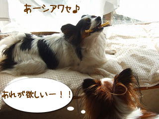 今日も まんじゅう人気は続いておりますよ(* ̄m ̄)毎日繰り広げられる【まんじゅう争奪戦】。依然、ジュピの全戦全勝とゆぅ結果でございますあー。クレちゃん。ガンバッ┌(・_・)┘└(・o・)┐うわ。この子ったら なんてことをクレがいないと 散歩も出来ない“マザコン”のくせに。青葉の森で 『赤ちゃんの犬がいたよ~』って言われちゃった4歳のくせに(ぷぷ)。どうやら ジュピの中の“男気”が 時々 顔を覗かせてしまう模様ですよ。まんじゅう争奪戦は きっと明日も熱く繰り広げられる事でしょう今日は 散歩ついでに おやつを買いに いつものペットショップにも行きましたよ。たーくさん おやつを買って クレもジュピも大喜びです。ちょっと 浮かない表情に見えなくもないですがこれは真剣に おやつを見つめている顔でございます!!(* ̄m ̄)ノ彡_☆ばんばん■■■お知らせ■■■BBSに 楽天ユーザー以外の方からの いたずらが多くなってものすごく困っています。しばらくの間 楽天以外の方の 書き込みを停止させて頂く事にしましたのでメッセージ、日記コメントは の P-BBS(画像も貼れます)の方にお願いいたします。ご迷惑をおかけしますが どうぞ宜しくお願いします。クレとジュピも待っていますよ~♪:::クレージュ:::