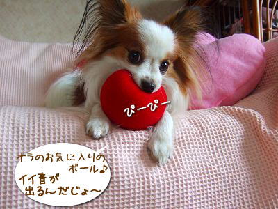昨日の日記見ていただけましたでしょうか?青葉の森で 目をキランキランさせている クレジュピがそこにはいます+.(*'∇'*)゜+もしまだご覧になっていなかったら ぜひ見てやってください。私の自慢の子供たちを。クレジュピは とにかくボール遊びが 大好き♪いつも日が暮れるまで エンドレスで ボールを追いかけて遊ぶのです。私の方が へとへとで もう勘弁してよ~って泣きを入れるほど(σ.σ)だけど・・・。そのエンドレスのはずのボール遊びが 最近はエンドレスじゃなくなって来ました(涙)そそ。少し走ると すぐ休むんです。写真は撮りやすくなって すごくイイんだけど(泣き笑い)クレもジュピも そんな年齢になったんだな~って思ったら鼻の奥が ツーンとなって 涙でレンズが曇ってしまいました.+:。(ノ。σ、)゚.+:。 2007.3.10撮影:::クレージュ:::いやだ。時間よ 止まれもっともっと ふたりを愛します。もっともっと 遊んであげます。抱きしめます。守ります。だから、ずーっと一緒にいさせてください。なんて やけにしんみりしてしまいましたが。今日も クレとジュピは元気ですよ☆彡いっぱい食べていっぱい ねんねしていっぱ~い 遊びましたよ+.(*'∇'*)゜+ふたりの今現在のブームは あるおもちゃで遊ぶこと♪それは 何かと申しますと・・・これ!!ご丁寧に【饅】と書いてあるおまんじゅうですε=(>ε<) プーッ!!ふたりとも 【饅】で遊びたくて遊びたくて 仕方ないらしいのですよ。やわらかさと言い大きさと言いふたりを 虜にする要素がいっぱいの【饅】でつ。ご覧の通り熱き戦いに 勝利するのは 常にジュピなのですが明日は クレの口にも【饅】が 入るといいね~(>▽<;ハハそんな ひっぱりだこの【饅】は 実はこの様な お姿でしたよ。ぬいぐるみの手に しっかり くっついていたのになぁ。可哀想に ぬいぐるみは 一度も 誰にも見向きもされてないです( ̄o  ̄;)。■■■お知らせ■■■BBSに 楽天ユーザー以外の方からの いたずらが多くなってものすごく困っています。しばらくの間 楽天以外の方の 書き込みを停止させて頂く事にしましたのでメッセージ、日記コメントは の P-BBS(画像も貼れます)の方にお願いいたします。ご迷惑をおかけしますが どうぞ宜しくお願いします。クレとジュピも待っていますよ~♪:::クレージュ:::