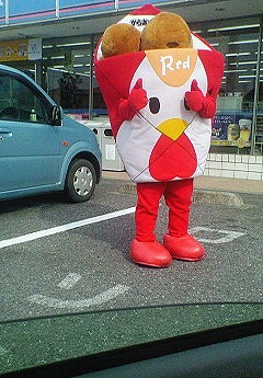 ゴールデンウィーク中、ほとんど人も車もいないところにあるローソンで、日本で一番がんばっている からあげくんをいきなり見つけました。周りを見渡しても、私達とからあげくんだけ・・・・からあげくん貸切りどこからみても滑稽な状況なのにからあげくんは近寄ってきてサービス精神旺盛にローソンへ入って からあげくんを買うよう、ジェスチャーで指示かわいそうな空気に負けてもちろん買いました。最後には車道に出やすいように交通整理をしてくれたり(あまり車は走ってなかったけど)写真を撮らせてくれたり100点満点のがんばりを見せてくれたからあげくんでした。中に入ってる人が気になる・・・。貴方なら、ディズニーでもいけるよ!