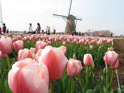 日本に戻ってもうすぐ3週間なのに、現実逃避はまだ続く。完全に逆ホームシックの私たちは、なんとかオランダと関わり合っていたくて、何を言っているのかぜんぜん分かりもしないオランダのラジオを聞いたり、オランダの雰囲気を感じる場所を探したり。で、見つけた。それもオランダ風車とチューリップを見れる、これぞオランダ!!っていう場所を。しかも千葉に。佐倉ふるさと広場。正直あんまり期待してなかったんだけど、風車が目に飛び込んできた瞬間、ちょっと潤んでしまった二人。ちょっとキモい。でも、あまりにもオランダで見た風車とそっくりで。それもそのはず、その風車は正真正銘オランダ人がオランダで造って、持ってこられた物らしい。ご苦労様なことである。でも、なんで佐倉・・・・???と思って調べてみたら、実は佐倉は、そこの藩主だった堀田正睦(なつかしい!誰だか完全に忘れてたけど、名前だけは覚えてた、あの「ほったまさよし」!)が早くから蘭学を取り入れたことによって蘭学が栄えた場所らしい。やるな、まさよし。ちなみに順天堂病院もこの佐倉で、蘭学を学んだ人によって建てられたものらしい。しかも、この風車の名前、デ・リーフデは日本に400年前初めてやってきたオランダ人が乗っていた船の名前。にくいねえ。<emoji code="h420" />同時に東洋に向かって出航した他の何隻かの船は次々に漂流したり、ポルトガル船にだ捕されたりで無事着けなかったのに、このデ・リーフデだけが生き残って日本にたどり着いたらしい。この風車も無事着ける様にと命名されたのかな?う~ん、それにしてもこんな近くでオランダの風車を見れるとは、オランダに行く前は全く知らなかったのだから、興味がないっていうのは何だかもったいないことだなあ。もっと宣伝すればいいのに。ていっても興味ない頃は見に行かなかったかな。ちなみにこの風車、成田空港に向かう京成線から見ることもできます。