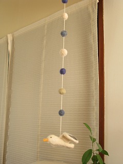 プレゼントしてもらったビーズストラップを見てるうちに、手作りの良さにすっかり魅了されてしまった私。しかし学生時代、家庭科の授業が恐怖で、廊下で家庭科の先生の顔を見るのもイヤだったのも、他でもないこの私。そんな私が手作り?ムリムリ!!やめとけって!!と心の悪魔が囁くのを振り切って、本屋の手作りのコーナーへ。そして見つけた!ブキッチョで裁縫が大嫌いな私にも出来そうな、「原毛から作るフェルトの小物」そして必要な材料を揃える為に、絶対行くことはないだろうと思っていた手芸洋品店へ。私の知らない世界。それはユザワヤ・・・。中に入ると、ものすごい広いしかも手芸、手芸、手芸・・。目的地に着くまでのわずかな間で具合が悪くなるほど。とりあえず最低限必要そうなものを本を見ながら揃えて、さっさとレジへ。レジは4つもあったのに女性ばかり5人くらいずつ列を作っていました。そそくさと外へ出て、一呼吸。シャバの空気はうまいっす。そして2日間、実質3時間くらいで出来たのがコレ↓どうでしょう。自己評価。私にしては100点中、1億点。調子に乗ってこんなのも↓そして、本を見ないでオリジナルに挑戦↓糸を使わないから超カンタンああ、新しい世界に足を踏み入れて良かった