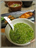めかぶ。と書きたかったんだけど。考えてみれば日本人ほど海草をいろいろ食べる人種って他にいるのかな?めかぶ、わかめ、もずく、こんぶ、・・・これみんなseaweedって言われても、「えええええええ」って感じだよねえ。なんとかseaweedとかになるのかも分からんけどー。それはさておき。月曜の夜、めかぶを食べました。ようやく今年初、スーパーでまるまんま売ってるめかぶを見つけ、即買い港町の実家では、昔はタダでもらった(物々交換と思われる)めかぶが、朝の食卓には当たり前のように私を迎えてくれていたけれど。今はまるまんまにお目にかかれるのは大変貴重な感動の再開になってしまいました。まだただの黒い海草にしか見えないめかぶにお湯をかけて、キレイな緑色・我らの「めかぶ」に変身!そして包丁でみじん切り。はめんどいので、さぼってミキサーにかけたら、大きさバラバラ。味は一緒だ、とつぶやいて・・・っと。だし醤油と醤油を半量づつかけて混ぜる。そしてアツアツのご飯に・・・・・あとはご想像におまかせします・・・港町生まれってステキ。この味を、小さな頃から食べれていたなんて・・・それも毎日のように。ただで。幸せだったんだなあ