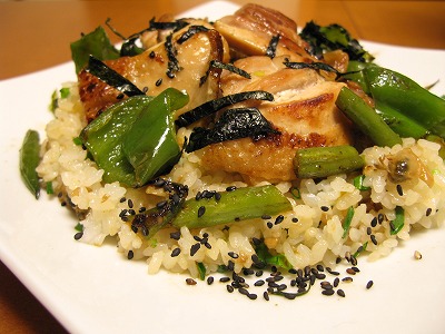 新婚時代に何回か作ったこのご飯を、久々に作ってみた材料は、鶏もも肉 1枚あさり 250g長ネギ 1本 (半分はみじん切り、半分はぶつ切り)ピーマン 2~3個作り方1.だし100cc、酒50ccであさりを茹で、殻を取り、身を汁に戻す。 ↑この作業、面倒なので今では缶詰で代用(水と酒を少し足す)。昔は若かったなあ。2.砂糖大2、しょうゆ大2を入れ、みじん切りにした ねぎも入れ、トロトロになるまで煮詰める。3.その間、鶏肉を焼く。塩ひとつまみ、コショウ、ピーマンとネギも入れちゃう。 塩 小さじ1/5、 酒 大さじ1 を入れ、強火4.ご飯に2を混ぜる5.3を上にかけて、ゴマ、海苔、あれば万能ネギなどを載せる。今回はネギが足りなかったので、上にはインゲンを乗っけてみた。さて、オットは新婚時代の味を覚えているかな・・・?目を輝かせる私の前で、オットが無邪気に放った一言。「これ、うまいね~!!!」明らかに初めて食べた感想ですが?その後説明したけど、やっぱり思い出せない模様。う~む。あの頃ひとつひとつ殻からあさりの身を出していた日々は何だったんだ・・・
