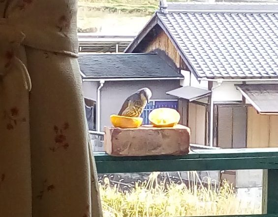 ミカンや果物を置いたら いろんな小鳥も 姿を見せます
