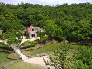 愛知万博の時、ローソンでもネットでも予約が取れなかった待望の『さつきとメイの家』へ行った。何度も繰り返し見ていたトトロだけど、帰国前にも最後の予習(?)。前の晩は、近く(?)の温泉に従姉妹たちと一緒に泊まって、帰国前々日の夜も楽しく過ごす。結構駐車場から遠かったけど、もうすぐ80のおじいちゃんももうすぐ2歳のKちゃんも元気に歩いた。予習ばっちりの丑太郎と寅子は、説明のお姉さんのいろいろな質問にも元気よく答えて、わくわく。家に入ったとたん、メイのように元気に探検して回った。どんぐりも見つけた。やっと願いがかなってよかったね。