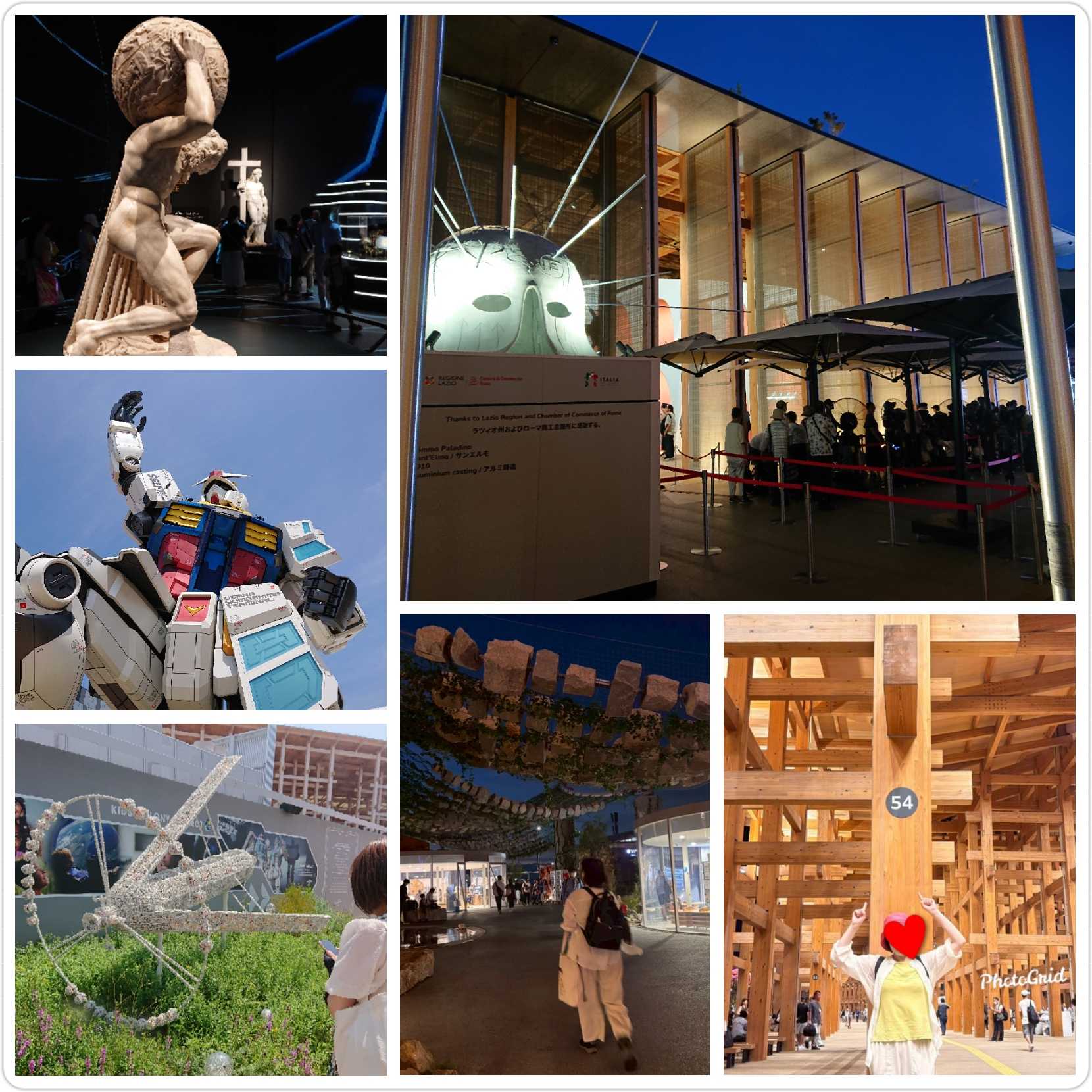 さて夏パス1回目。最高気温34度ってどんなん?とドキドキしながら向かいました。サングラスに日傘に接触冷感のアームカバーにハンディファン、小さな折りたたみいす(待ち時間が長い時は必須)と準備万端でいざ入場!9時に入って20時半までいましたが、意外と大丈夫でした。今回は運よく7日前予約で赤十字館GET→3日前予約で未来の都市GETあとは並んでもいいからのんびり行くか~と思ってたらなんと当日予約でシグネチャーパビリオン2つ取れた!ほかにも予約の合間にダメもとで行った北欧館がまさかの待ち時間ゼロ、夜の花火の時間に入ったルクセンブルク(90分待ちがデフォルト)が20分待ちだったりとラッキー続きの1日でした。そして、会期の半分すぎてようやくオープンしたネパール館にも行けた! 一見学校みたいなそっけない作りの建物の中に、これでもかと仏教美術品と民芸品がぎっしり!インド仏教と中国仏教の中間みたいな感じで、何に使うかわからないようなキテレツなフォルムの仏具がイカス☆晩ごはんは17時から合流した娘とポーランド館のレストランで。北欧館のコーヒーとチョコもおいしかった♪3回目とあって効率よい移動ができるようになったので今のところ疲れは出ておりませんもちろん日焼けもナシ。次はグルメをテーマに回ろうかなと思ってます