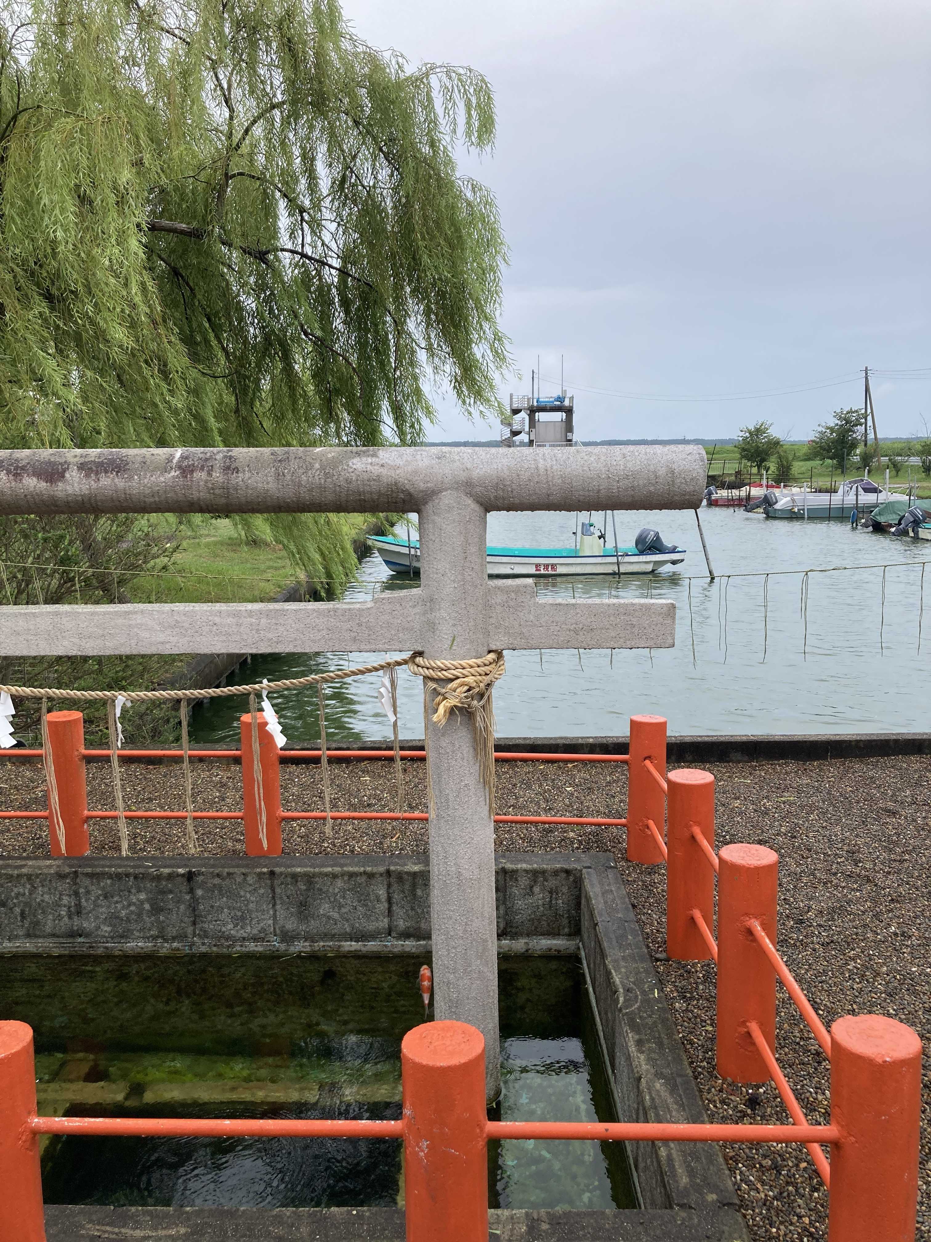 神社を出て、海?川?の近くに行くと
