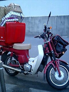 仕事中に郵便局の赤バイクを発見しました。