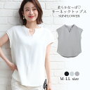 6/28 10時~24h超目玉■ ワッフル素材 キーネックトップスカットソー フレンチスリーブ T 半袖 細見え ゆる 体型カバー ラウンドカット 2020 夏 新作 ニットソー【2枚可】
