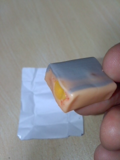 一番外側は、あのソフトキャンディーで、ヨーグルトっぽい、あの甘酸っぱい味。