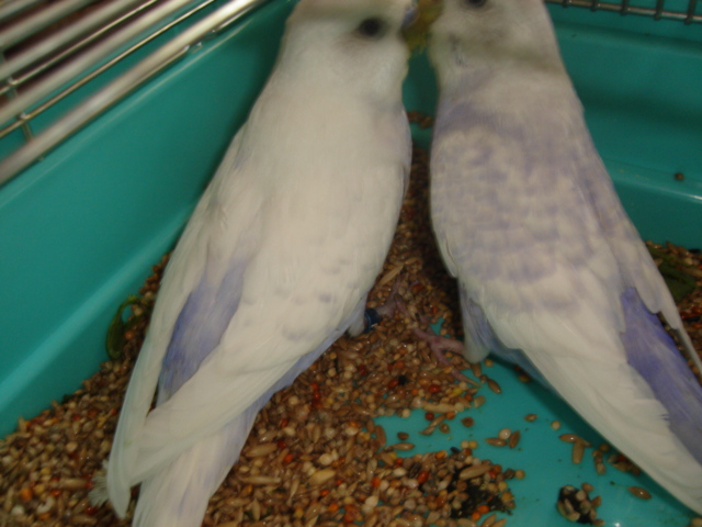 やっと、待ちに待った・・セキセイ今日、来ました♪鳥屋敷にようこそ・・・・一枚目の写真右の子が・♀・パステルカラーオパーリンスパングルライラック左の子が・♂・ダブルファクタースパングルホワイト写真の撮り方下手くそで済みません。しふおりんさんちの「らる美」の兄弟すじの子達で貴重な子たちです。この子達の子は親と同じ色しか出ないそうです。