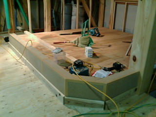 家内の南には、4.5畳の畳スペースがあります! 床から30センチ高く造ってもらい、その間にはタンスみたいな収納スペースを! 大工の角直さんが、日の沈んだ寒々の空気の中、がんばってくれています!! ありがと~!!! *cotori*
