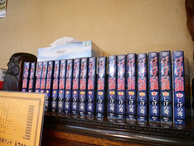 テーブル席には「バリバリ伝説」の単行本がずらり