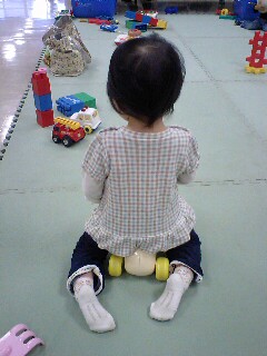 写真は待ち時間におもちゃで遊ぶ姿です。