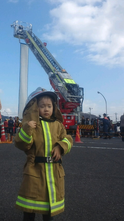 子供用のコスチュームを着せてもらったので、記念撮影。