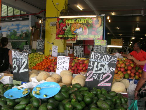 ケアンズに訪れたら、ラスティーズに寄ってください。フルーツ・ベジタブルマーケットです。金、土、日曜日朝6時から午後3時くらいまで、たくさんのお店が集まっています。中心部にあるので、滞在先のホテルから歩いていける距離です。マンゴを買うなら、スーパーマーケットではなく、ここをおススメします。断然、安いです。朝に行けば、マンゴの試食ができるので、おいしいマンゴを売っているお店から、買うことができます。今日は、マンゴが1キロ2ドルで売っていました。量り売りなので、1個から買えます。めずらしい果物もあります。果物だけでなく、歩き回っていると、パン、ケーキ、マカロン、コーヒー、ココナッツジュース、シーフードなど売っているお店も見かけます。マッサージショップもあります。ラスティーズの端のほうには(Sheridanストリート側)、フードコートもありますので、朝食、ランチに利用してはいかがですか? RUSTY’S Sheridan Street Cairns