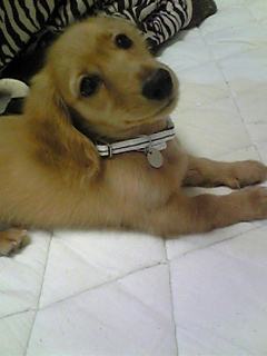 ペットショップでのお目当ては首輪(今まではパパのリストバンドをしてたの)