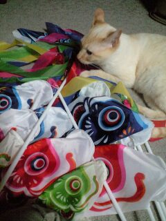 鯉のぼりに絡まって幸せそうなサクです(笑)