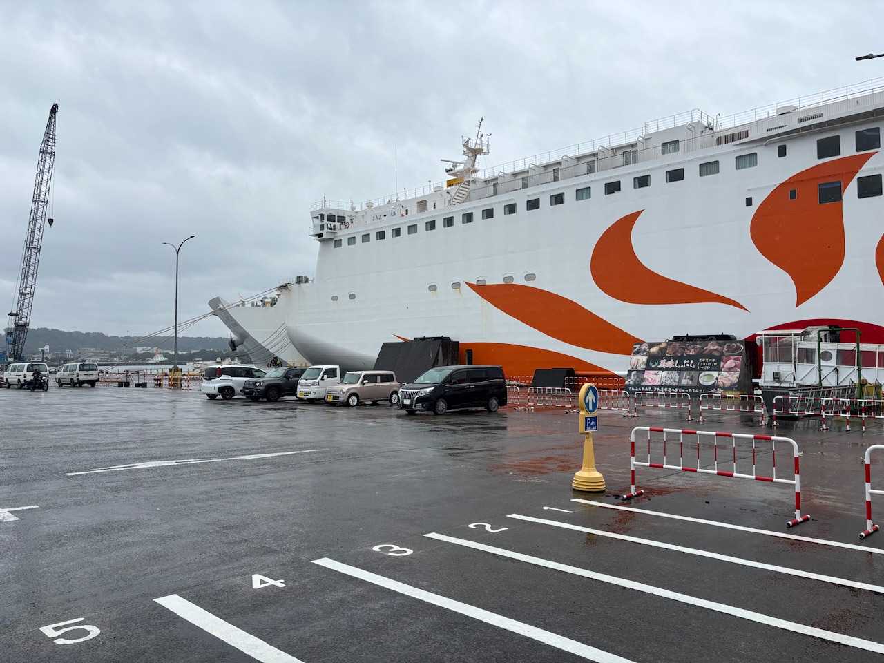 3日目 雨大阪志布志線のフェリーは四国の南を通るのでそりゃ瀬戸内海を行くフェリーよりは揺れるアナウンスが何回も揺れると言っているしがしかし新日本海フェリーを多用している私にはこんなの揺れているうちに入らん雨は降っているけど大したことないないじゃんって思ってた今日の予定大隅の根占港まで行って根占港からフェリーで山川港へ渡り指宿入り指宿で3泊朝九州に近づいてから携帯の電波が受信可能になり九州地方の大荒れ天気を知り嫌な予感がして調べたら根占山川フェリーは悪天候のため本日全ての便が欠航という事実を知るえーーーー根性ないぞ!まあ小さい船だから仕方ないのかど、とうしよぉぉ輪行が不可能ではないが根占港方面へ行く電車はない宮崎回りで鹿児島中央駅へ行き、そこから指宿へ特急を使わなければ指宿に着くのは夜中になる自走すると鹿児島の街の中を雨で走らなきゃならない最短で垂水からフェリーに乗っても自走距離は100キロ今日垂水港からのフェリーが出ているかはわからないしんどいしんどすぎるどうするどこか別の宿をとるか鹿屋なら宿がたくさんあるでももし明日もフェリー欠航だと近辺に駅がない輪行も考えて志布志の方がいいか志布志港から8キロほどのところに道の駅がありそこが宿泊もしている温泉もある輪行代金より安いいいな早く着いても時間を潰せそうというわけで、予定変更大崎まで走りますフェリーは定刻の8:55に着岸したがバイクと自転車は一番最後に降りるので9時半近くになった雨の中を走る用意はした毎年必ず雨に降られるのに荷物になるのが嫌で安物のガッサイ雨具を使っていたそして必ず寒くて大変な目に遭うので今年は嵩張るけどモンベルの自転車用雨具を持ってきたたぶん15年前くらいに買ったやつゴアテックスだからヘタれてないししっかりしてるよかった、早速役にたつじゃないかいや、本当は使わないにこしたことはなかったけど…大雨という感じではないけどしっかり降っているでは、行こう!国道220号線道が広くないのでトラックはやっぱり怖い膨らめないから水たまりも行っちゃうよ!着いたチェックインの3時まで時間がありすぎる自転車きれいにするかにゃーーんこ!おはよう雨宿りをしているらしい寒そうだなこの辺は11月中旬並みの気温らしいからね自転車を磨いてレストランでフライの定食を食べてコンビニで買い物をして3時チェックイン自転車を館内に置かせてもらえたありがとうございます明日から天気回復傾向みたいだけどこのへんは回復が遅いみたいとにかく、フェリーだけ動いてくれたらなんとかなる欠航しませんように!お願いします!10月22日走行距離 8.93キロ総走行距離 126.01キロ