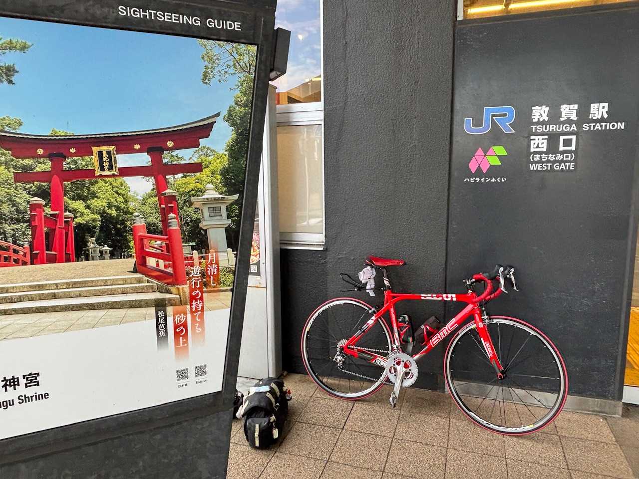 敦賀の扉が開いたよ〜敦賀駅近ホテルまで5キロちょい暗くて静か車のほとんどは高速道路へ行ったみたいこの時間トンネルが1番明るい正面が敦賀駅小雨予報だからレインウェア着たけど降らなかったでは明日からスタートいたしますおやすみなさい