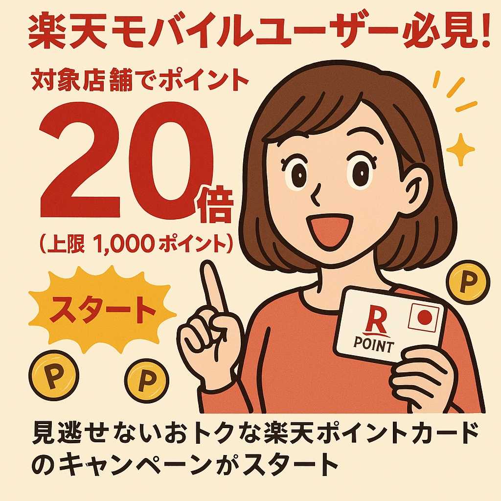 ご訪問ありがとうございます。ただいま楽天グループでは楽天従業員からの楽天モバイル紹介キャンペーンを実施中です。下記からログインして楽天モバイルにご契約いただくと、最大14,000ポイントプレゼントいたします!よろしくお願い申し上げます。https://r10.to/hYYGNa【楽天従業員から紹介された方限定】楽天モバイル紹介キャンペーン!回線お申し込みごとにポイントプレゼント。上記URLからどなたでもお申し込みいただけます。楽天モバイルユーザー必見!対象店舗でポイント20倍(上限1,000ポイント)見逃せないおトクな楽天ポイントカードのキャンペーン楽天モバイルユーザーの皆さんに朗報です。2025年12月31日まで、対象店舗でのお買い物が楽天ポイント20倍※になる、超お得なキャンペーンが開催中です。コンビニから飲食店、ドラッグストア、スーパーまで、日常的に利用する店舗が対象となっており、普段の買い物をするだけでザクザクとポイントが貯まるチャンスとなっています。※上限1,000ポイント。要エントリー。キャンペーン詳細とエントリーはこちらからhttps://network.mobile.rakuten.co.jp/campaign/shop-point/このキャンペーン、楽天モバイルを契約している方かつ、楽天ポイントカード利用登録している方なら誰でも参加可能。ただし、エントリーが必要なので、まだの方は今すぐエントリーすることをおすすめします。キャンペーンの基本情報対象店舗で楽天ポイントカードを提示してお会計する必要があります。楽天ポイントカードの利用登録が必要です。開催期間第2弾の開催期間は2025年10月1日(水)9:00から2025年12月31日(水)23:59まで。年末まで約3ヶ月間という長期間の開催なので、じっくりとポイントを貯めるチャンスがあります。もらえるポイント通常の楽天ポイントが20倍になります。ただし、各店舗の還元率(0.5%〜)の20倍という計算になるため、店舗によって実際の還元率は異なります。また、上限は1,000ポイントまでとなっていますが、日常の買い物で1,000ポイントを獲得できれば、かなりお得ですよね。ポイントの有効期限ポイントは2026年2月28日ごろに進呈され、進呈日から6ヶ月間有効の期間限定ポイントとなります。期限があるので、計画的に使うようにしましょう。対象店舗一覧:あなたの近くにもきっとある!コンビニエンスストア毎日立ち寄るコンビニでもポイント20倍は嬉しいですね。対象店舗は以下の通りです。- ファミリーマート- ポプラ- 生活彩家- デイリーヤマザキ朝のコーヒー、お昼のお弁当、仕事帰りのちょっとした買い物など、コンビニは日常的に使う場所。これらがすべてポイント20倍※の対象になるのは見逃せません。※上限1,000ポイントグルメ・飲食店外食でもポイントが貯まるのは魅力的です。対象店舗には人気チェーンが多数含まれています。- ケンタッキーフライドチキン(11月1日〜11月30日のみ)- くら寿司- カレーハウスCoCo壱番屋- 日高屋- サンマルクカフェ- 鎌倉パスタ- 倉式珈琲店- ほっかほっか亭- 不二家週末の家族での外食、ランチタイムのカレー、お持ち帰りのお弁当など、様々なシーンで活用できます。特にケンタッキーは11月限定なので、クリスマス前の11月中に利用するのがおすすめです。家電量販店・ホームセンター大きな買い物でもポイント20倍はありがたいですね。- エディオン- コーナン家電の買い替えや、日用品のまとめ買い、DIY用品の購入など、金額が大きくなりがちなショッピングでポイント20倍は非常にお得です。ドラッグストア日用品や医薬品の購入で特に便利なドラッグストア。対象店舗が非常に多いのが特徴です。- ツルハドラッグ- B&Dドラッグストア- くすりの福太郎- ウォンツ- ドラッグストアウェルネス- レデイ薬局- 杏林堂- ドラッグイレブン- ドラッグセイムス- DRUGユタカ- アメリカンドラッグ- ドラッグストアスマイル- スーパードラッグキリン- くすりの太陽堂- ドラッグストアエース- くすりの救命堂- ドラッグヤマザワこれだけ多くのチェーンが対象になっているので、全国どこにお住まいの方でも利用しやすいはずです。スーパーマーケット毎日の食材購入でもポイントが貯まります。- 大阪屋ショップ- ヤマザワ- タウンプラザかねひで- かねひでジップマート- まるき食費は毎月の出費の中でも大きな割合を占めるもの。普段の食材購入でポイント20倍になるのは家計に優しいですね。キャンペーン参加方法このキャンペーンに参加するには、いくつかのステップを踏む必要があります。順番に見ていきましょう。ステップ1:キャンペーンページからエントリーまずは楽天モバイルのキャンペーンページからエントリーが必要です。エントリー期限は2025年12月31日(水)23:59まで。楽天IDでのログインが必要になります。ステップ2:楽天モバイルに申し込み(既契約者は不要)すでに楽天モバイルを契約している方は、このステップは不要です。まだ契約していない方は、「Rakuten最強プラン」または「Rakuten最強U-NEXT」にお申し込みください。新規申し込み、