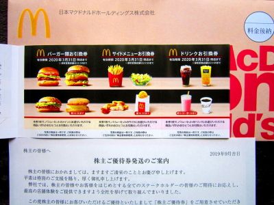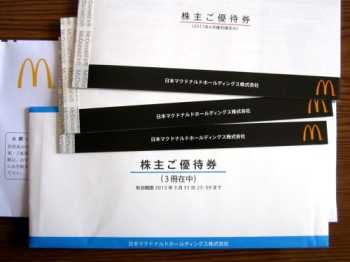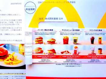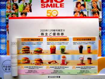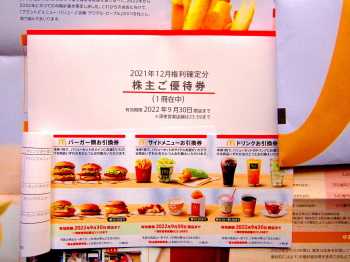 マックの株主優待が届きました。私は使わないので優待券は家族へプレゼント ♪