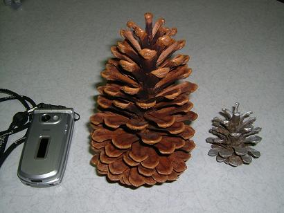 男なら多かれ少なかれ、大きい物に惹かれます。(変な意味でなくて・・・)大きな車、大きな船、大きな家、大きな魚、大きなカブトムシ・・・・。先日、仕事場の近くで、巨大なものを見つけました。それは、巨大な「マツぼっくり」。右のものが普通サイズです。とっても巨大!惹かれます?