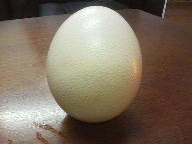 今日は、立春だというのに寒い1日でした。ところで、立春に起こる怪現象をご存知ですか?それは「立春には卵が立つ」というものです。中国の古い文献から発見された現象だそうです。「地球の廻転か何かに今まで知られなかった特異の現象が隠されているのか、或いは何か卵のもつ生命に秘められた神秘的な力によるということになるであろう」と、昨年の新聞各紙でも、この現象が取り上げられ、騒然となったのは記憶に新しいかもしれません。そこで、早速試してみました。しかもダチョウの卵で・・・結果は・・・挑戦から約3分後・・・見事、立ちました!ほらっ、ちゃんと立ってます!やはり、本当に立春には卵が立ちました。ダチョウの卵で実証したのは日本初?世界初?と喜びたいのですが、実は、皆さん、お気づきの通り、立春でなくても卵は立つのです。「卵は立たない」という思い込みのもとでは、誰もチャレンジしないという、人類の盲点をついたお話・・・だそうです。