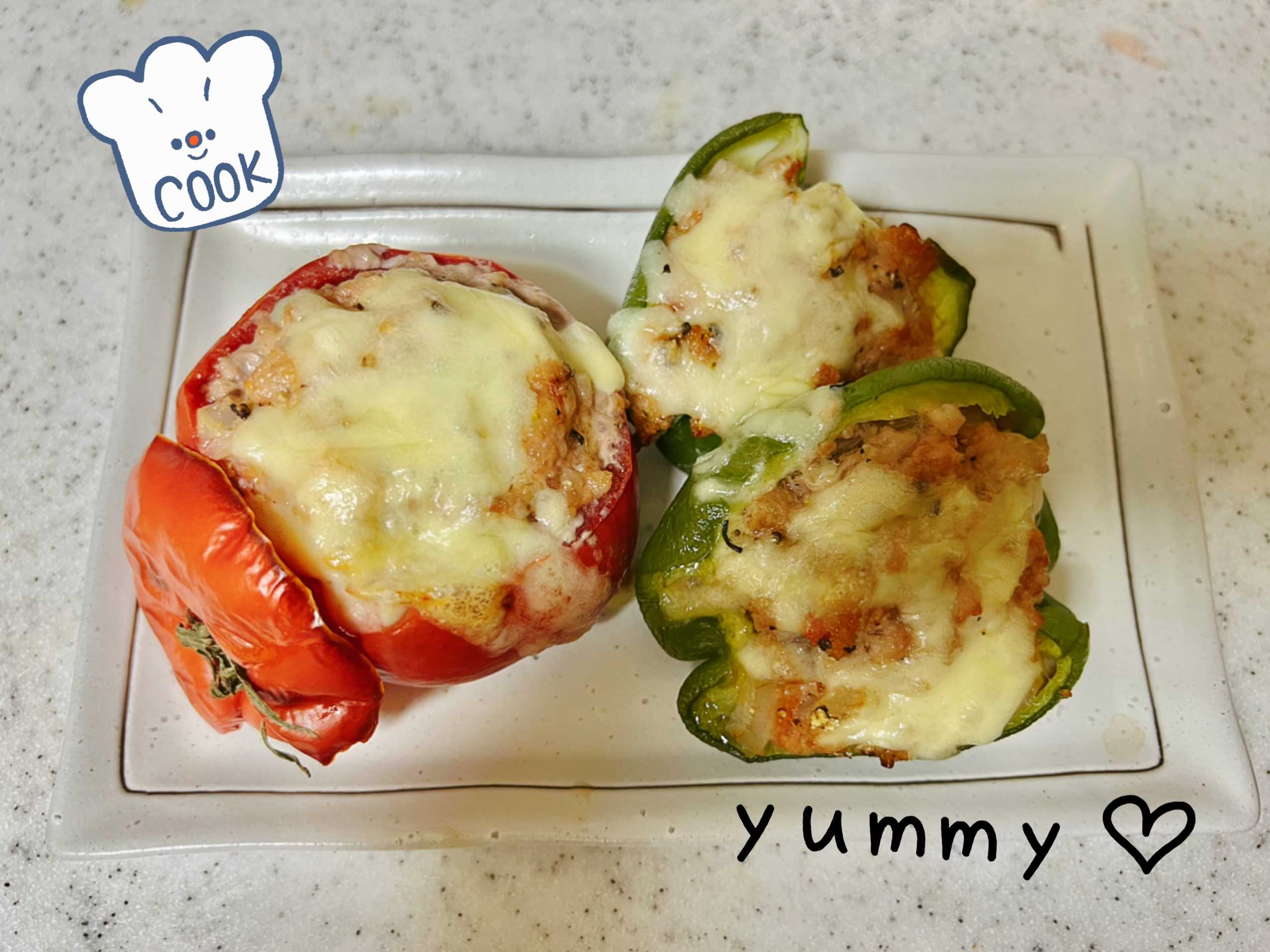 姫路のYAMADAで美味しそうな真っ赤なトマト🍅買ったので、お肉詰めた。ついでに道の駅で買ったピーマンにも詰めた。…めっちゃ甘い🤤美味しい🤤新鮮な野菜ってホント美味しい。えだまめちゃんのおやつにみかんゼリーこれがめちゃくちゃ美味しいの。毎日暑いから冷凍してアイスみたいに食べるのだ!