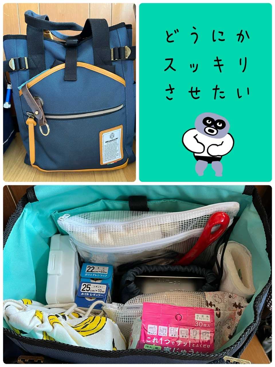 子どもバージョンといっても小さい頃はすぐ成長してサイズアウトしちゃうので普段使ってるマザーズバッグとか車の中に、いま必要なものをいつも補充して入れておくようにするだけです私が使ってるのはマザーズバッグなんてそんな大層なのじゃなくて、しまむらで1番安売りしてた770円のキャンバス地トートバッグ😂1歳半とどれだけ外で遊んでも砂場に置かれてもいたずらされて落書きされても汚れても痛くも痒くもなーい(ドヤおむつは常にこれに補充してるのでそのまま持ち出せばオッケー👌DAISO様✨のピクニックバッグ440円でございました流行ってたよねー!今もかな?えだまめちゃんが産まれた時から愛用してるけど便利です。全然壊れる気配もないよー。いつも入ってるのはパンパースMサイズとオムツ替えシート、お尻拭き普段もっとぎゅぅぎゅぅ詰めるけど、めっちゃ入るよ何がいいかと言うと、横だけ開けとけば1枚ずつ取り出せる✨というね!ダブルジッパーだから好きなとこに取り出し口作れるよそれから子どもがチャックを開けられるようにならない限り、閉めておけば全部出される事態も防げる😂こちら、えだまめ氏(11ヶ月)の犯行現場/やったったで!\どこかへ旅行する時はここに着替えや爪切り、保湿剤なども入れてそのまま持っていきます。荷造りいらず!ポケットも外側に大1つ、小2つあって細々したものも入れれるから便利なのです✨防災グッズってゆうかDAISOのピクニックバッグの話になった笑