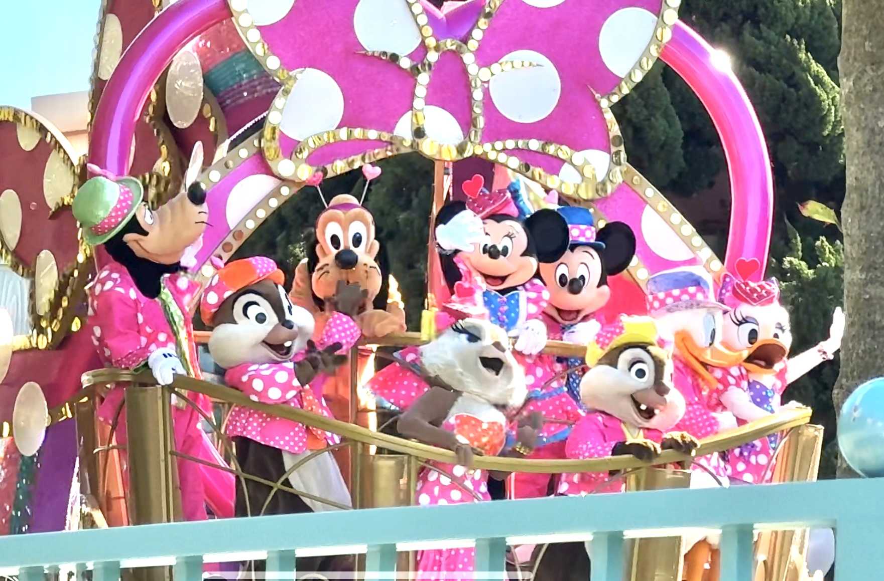 10:30〜開始パレード、トゥーンタウン到達は11:00ちょうどでした。最後のお見送り🩷ピンクピンクピンク!でとっても可愛かった〜ダンサーさんの衣装も可愛すぎるーーー