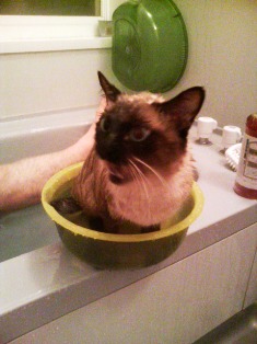 パパ好きなチェリンはお風呂場にいつものように一緒に入っていきましたしばらくすると「2匹もつれてきて」と声が何日か前からチェインパパが「チェリン、油っぽいよな」とか「汚れてる?臭わない?」って言っていたのでそろそろかなって思っていました汚れを落とします 洗った後は浴槽に入れます では、問題のからみのシーンです(笑) 「だれか~ たすけてくださ~い!」 クロスよりサンバももちろん入浴しましたよ入浴シーンっていったら♀でしょ (^m^)