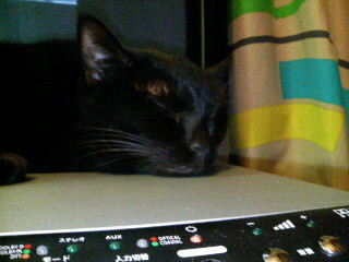 クロスのお気に入りの場所をご案内いたしますTV前のスピーカーのチューナーの上がクロスのお気に入りの場所ですたまにチェリンがその場所を代わって欲しそうに行くんですがチェリン目がけて後ろ足が素早く伸びたのを見ちゃいましたお母さんなのにすごすごそこを去るチェリンに同情しました(;;) うるさいですにゃん強気なお嬢さまですタブレットがようやく起動しましたゆうかがいないので黒2ニャンはとっても仲良しです